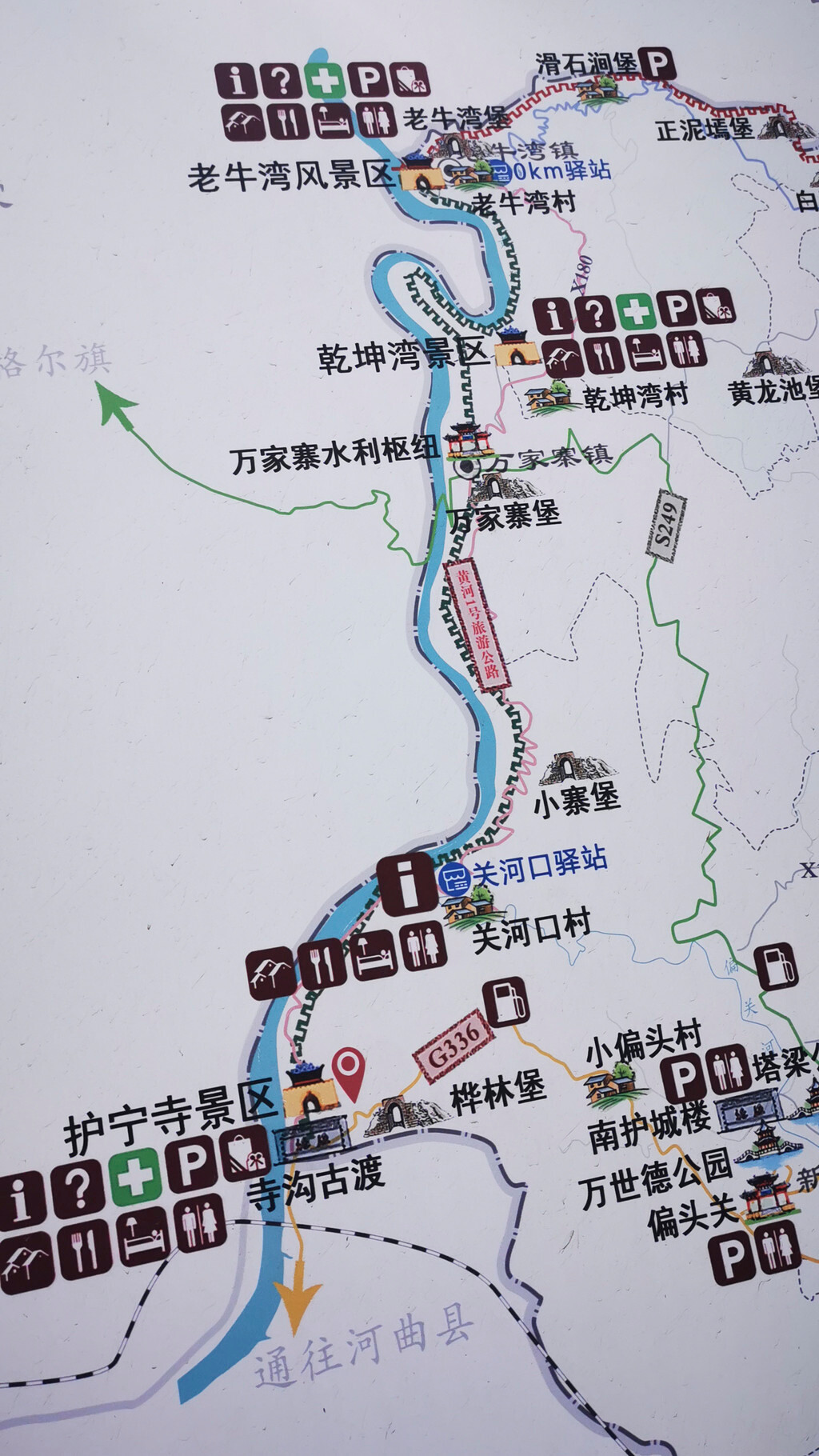 这是我们的旅行地图,由南向北从护宁寺景区到老牛湾风景区。