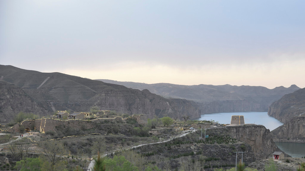 稍事休息,前往老牛湾堡探路,站在新村高出远望满目沧桑的老牛湾堡。现在已是晚7点左右了,拍了几张夜景后返回乾元香居,准备吃晚餐。