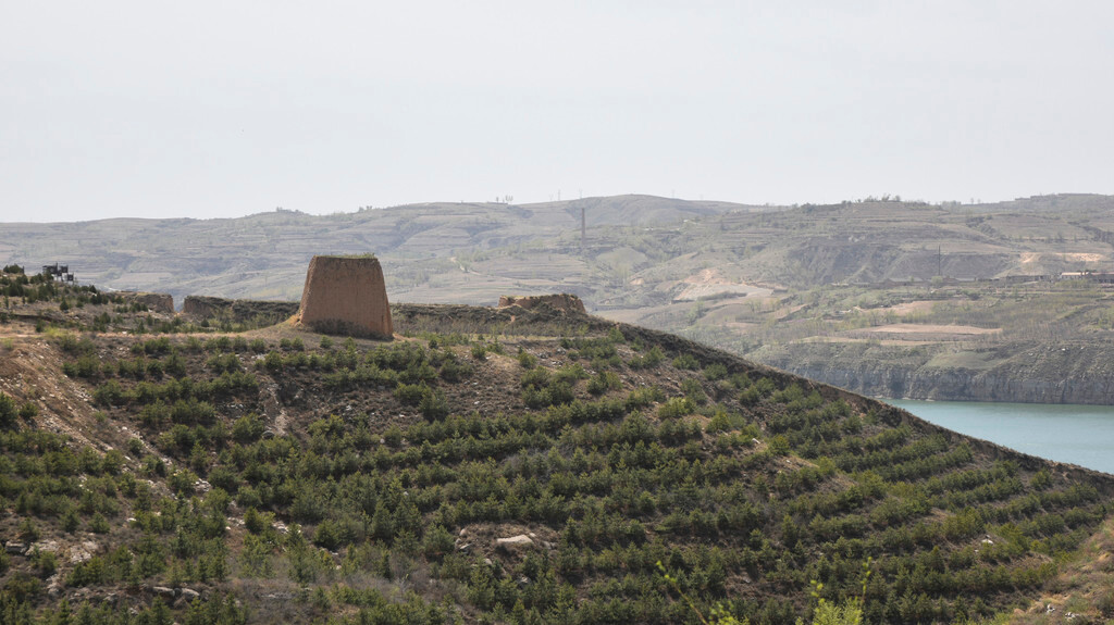 天峰坪镇石峁村的黄河边,经过特意修缮,保存最为完整和漂亮。这里烽燧密集,有圆有方,形状各异。夯土长城蜿蜒优美,延申至黄河岸边。在中间紧要处,甚至有一段长城被包了砖。
