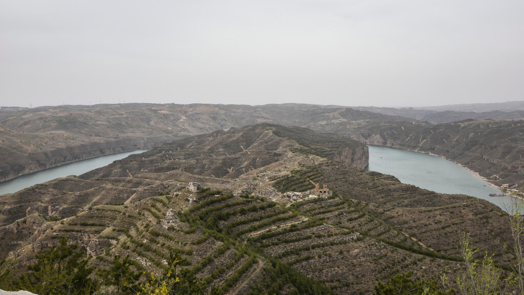 大地广袤,山川锦绣,黄河似一条翠绿色绸带从沟壑纵横的黄土高原上飘然而过。遗憾没有无人机,拍不到乾坤湾的壮观,俯瞰的高度还是差了很多,画面不那么完美。