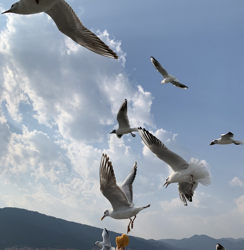 海埂大坝:海鸥投食,鸟儿飞行的精神令人敬佩!路边随意一家小锅米线味道不错。
