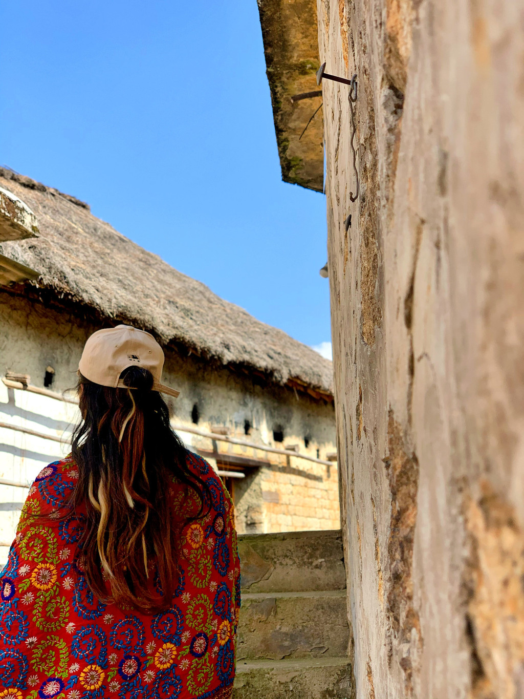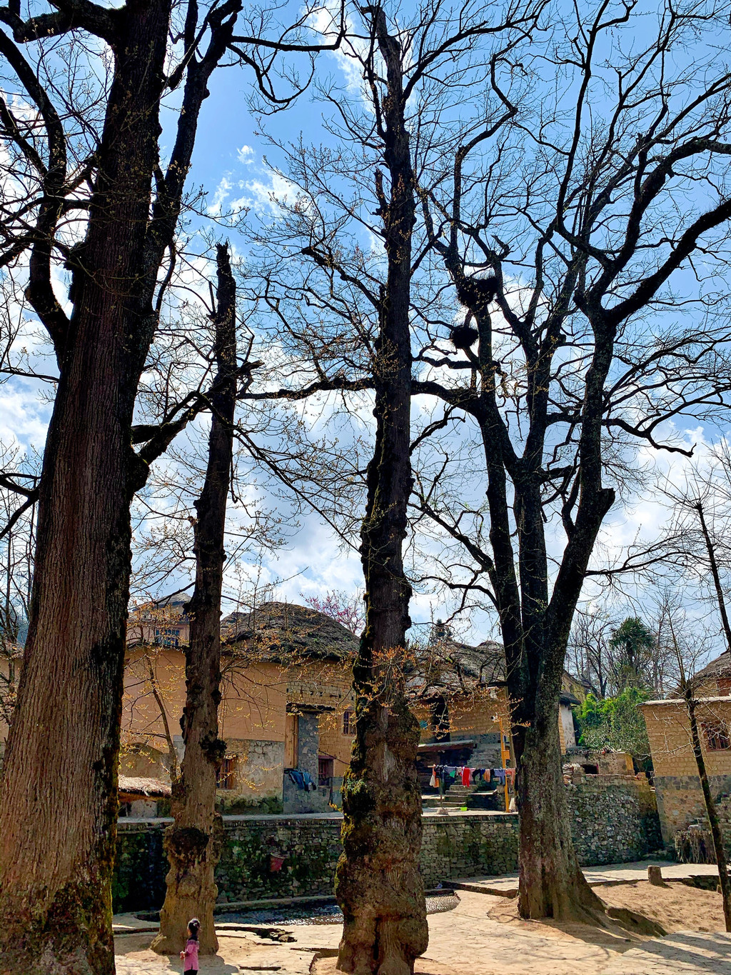 中午出发去阿者科村,大山深处的古村落,石头与泥土构成的“蘑菇房”,因顶部像一朵朵蘑菇,是无问西东的拍摄地。“阿者科”是哈尼话,意即“滑竹成片的地方”,据村民口传,阿者科的祖先从大瓦遮阿者科迁入此地。