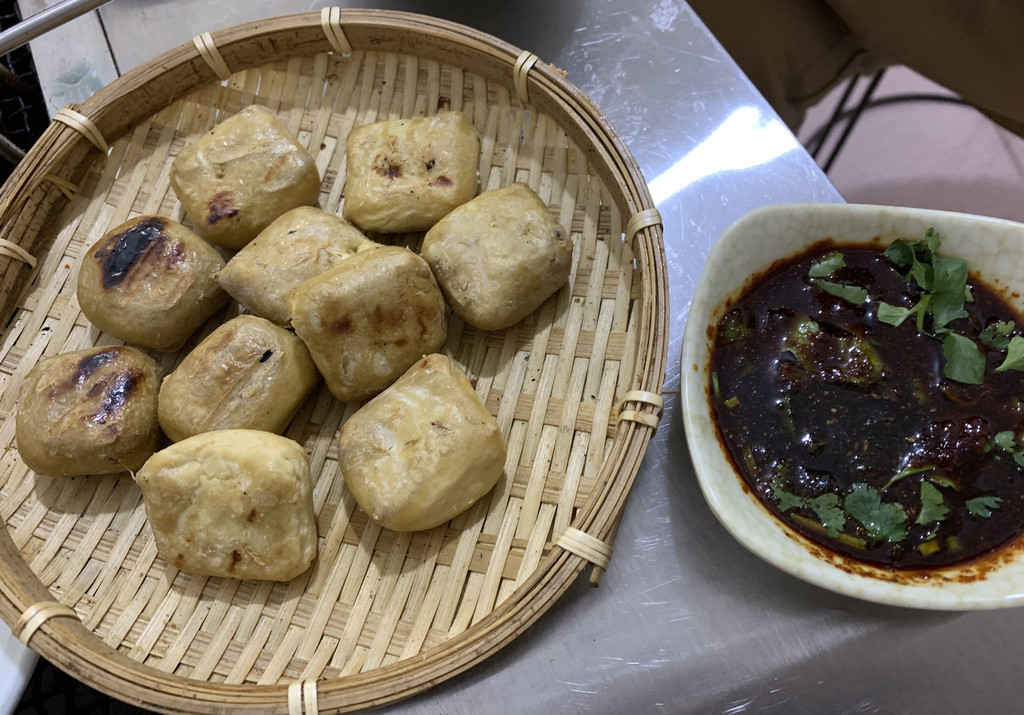 晚饭吃建水烧烤,推荐翻豆腐、烤土豆、菜芽米线、炒米线。
