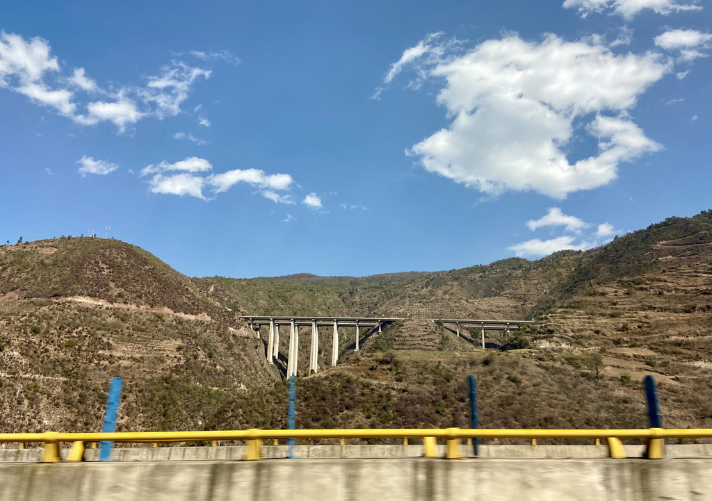 从攀枝花开往昆明的高速路风光绝美、高架飞跨重重大山、平均海拔2000米