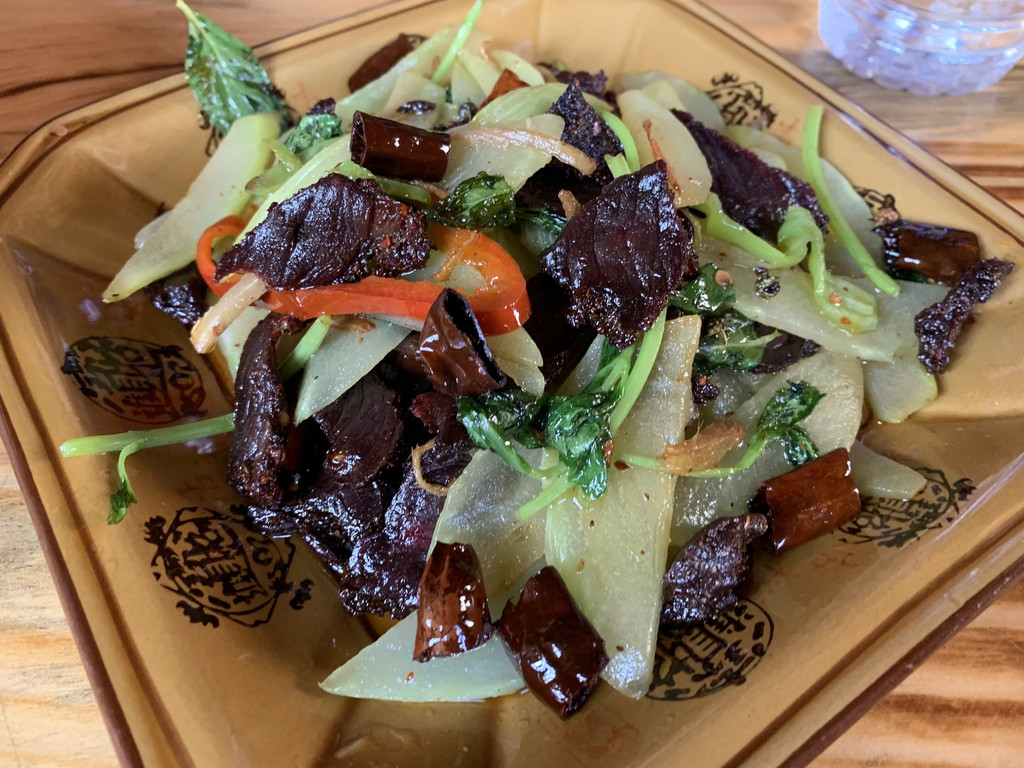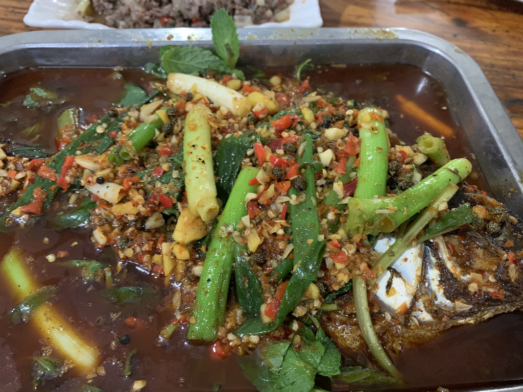 晚饭“六妹牛肉店”,食材新鲜,有各种野菜,所有菜色都会添加薄荷,推荐牛肉渣炒芹菜、鳝鱼。