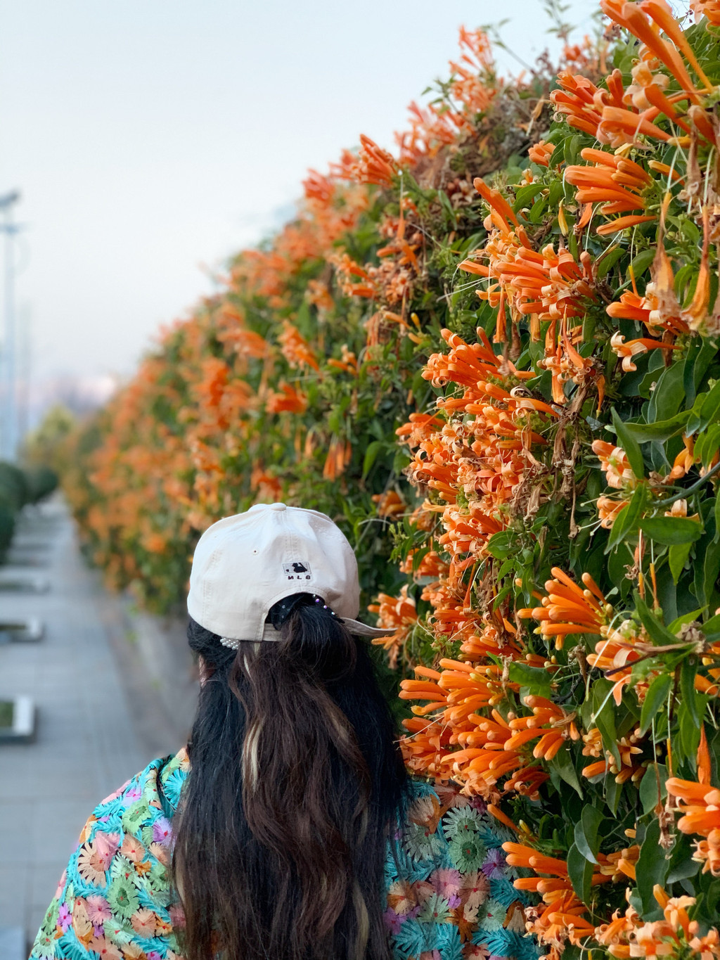 晚饭到达,琼海落日,与喜气的炮仗花合影