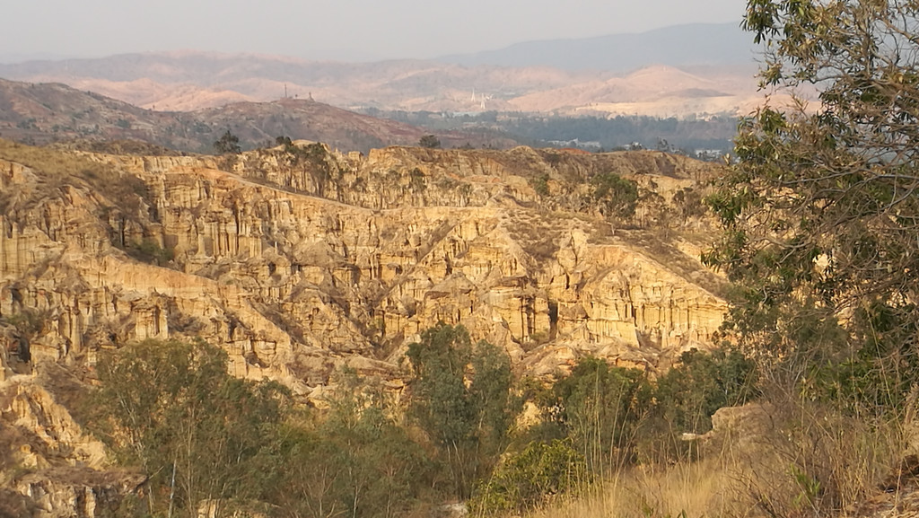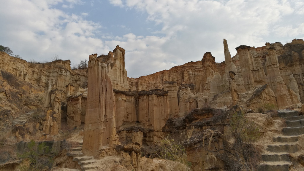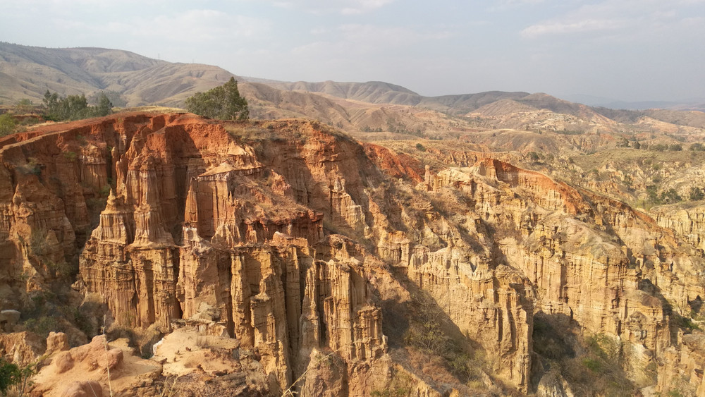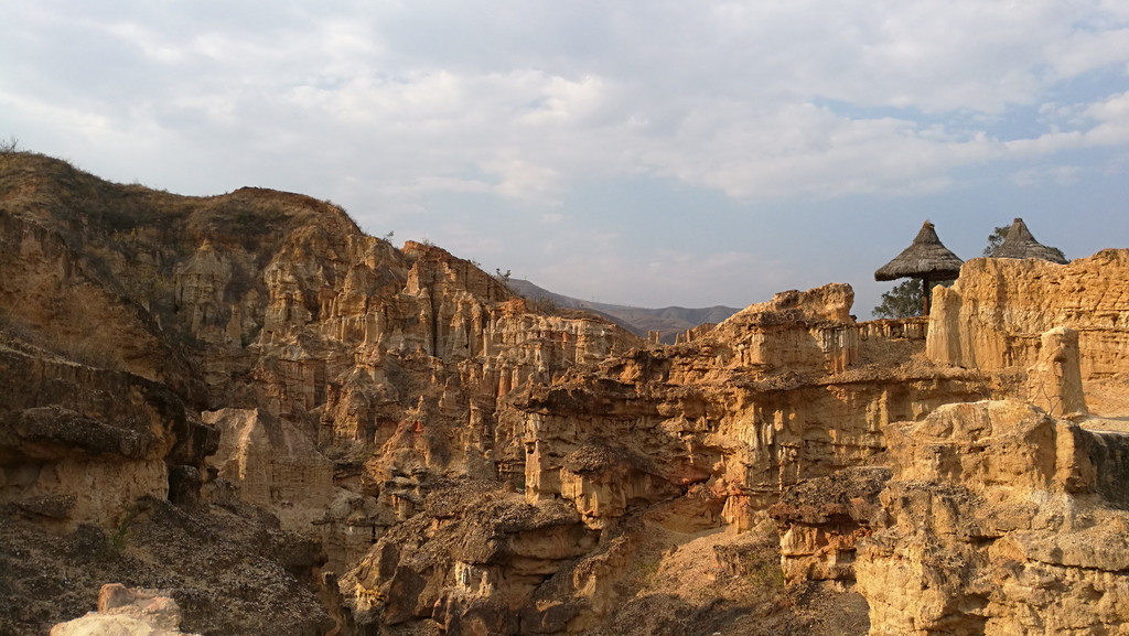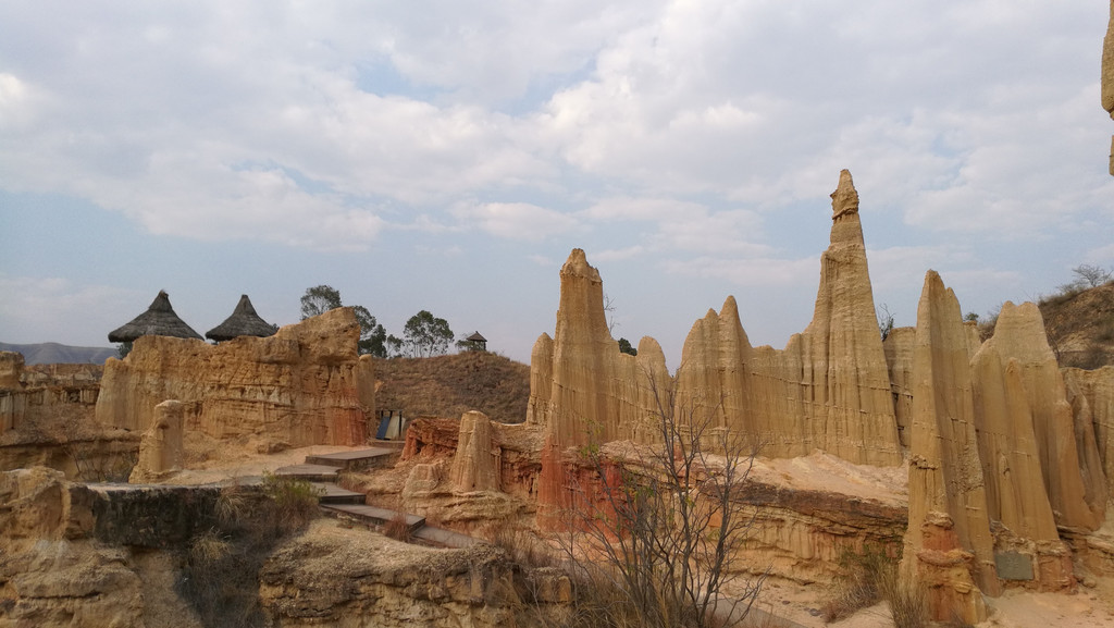 昆明长水机场到元谋约一百九十公里。全程高速,二个小时多一点,在下午三点多,到达预订宾馆。稍作休息,即前往物茂土林风景区。景区距县城二十多公里。最佳游览方式:坐景区电瓶车到山顶,然后往山下出口一路步行。物茂土林类似美国布莱斯国家公园,只是气势没那么大,颜色也没那么红。最佳时间是黄昏落日时分。可惜我们那天太阳弱了点。游览时间两个小时足够了。