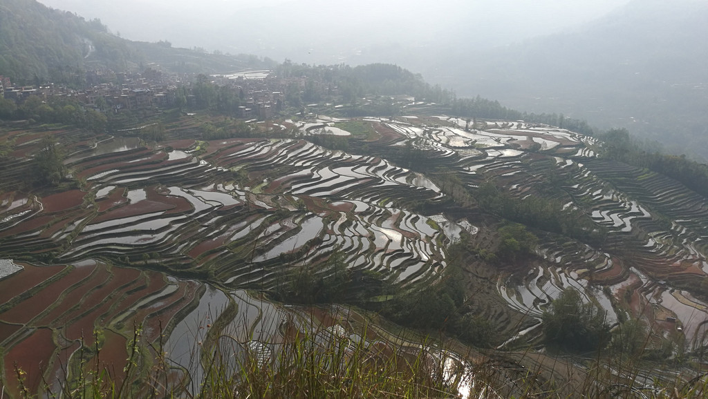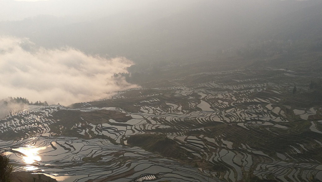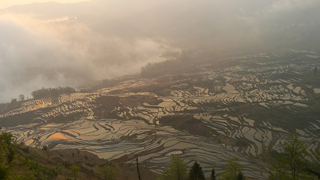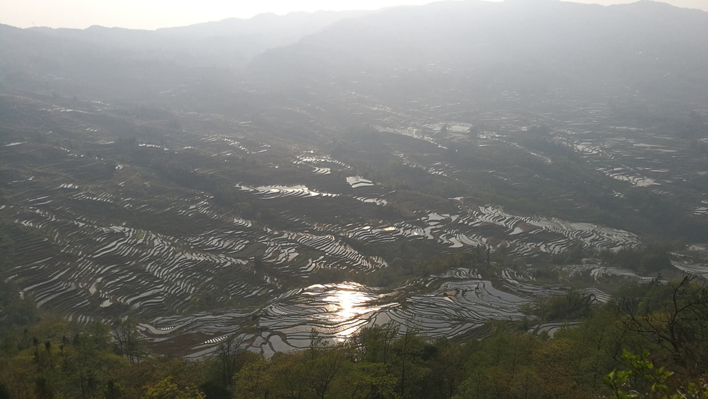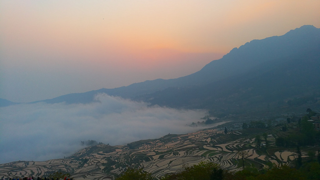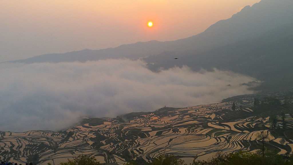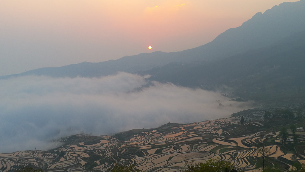 如果要看日落,坝达梯田旁边去箐口梯田的路上,有一个观景的地方。可以看到和坝达梯田观景台差不多的效果,这可是免费的!元阳梯田,只有看了才知道什么叫壮观。而看梯田,一是要在灌水季节,二是要在日出或日落时分。