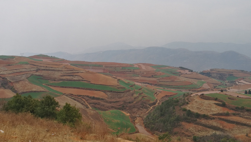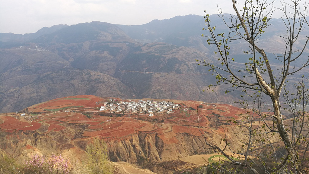 从元谋到东川红土地约二百公里。其中170公里的高速公路非常好,下了高速,上山的路较差。中午时分到达乐谱凹。乐谱凹民宿挺多,饭店也有几家。找了家饭店吃了中饭。随后开始游览。