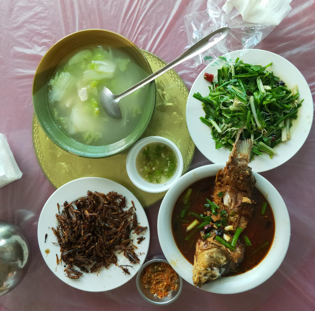 中午在哈尼农家餐馆吃了午饭。特色是这油炸蚂蚱,看你敢不敢吃了。