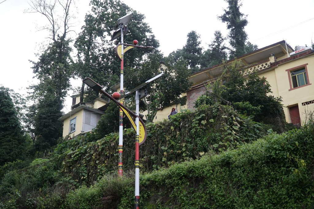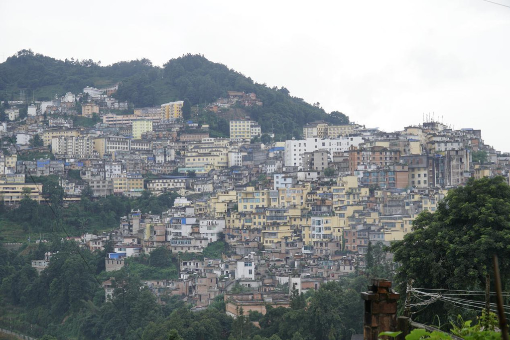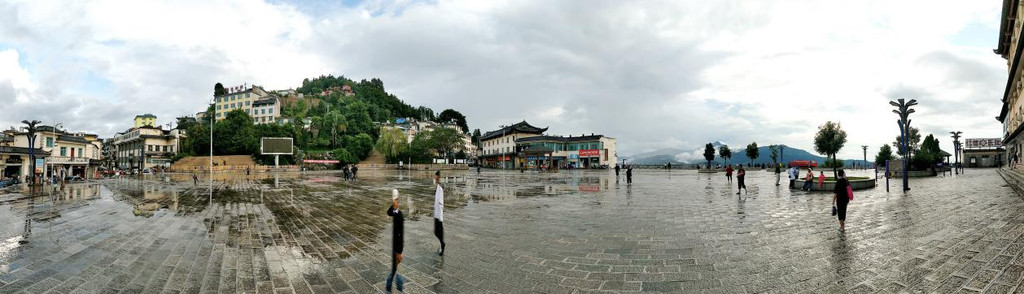 老县城新街高度差令人咋舌。遇到暴雨,街道就成了瀑布。街道路灯也用了哈尼元素。