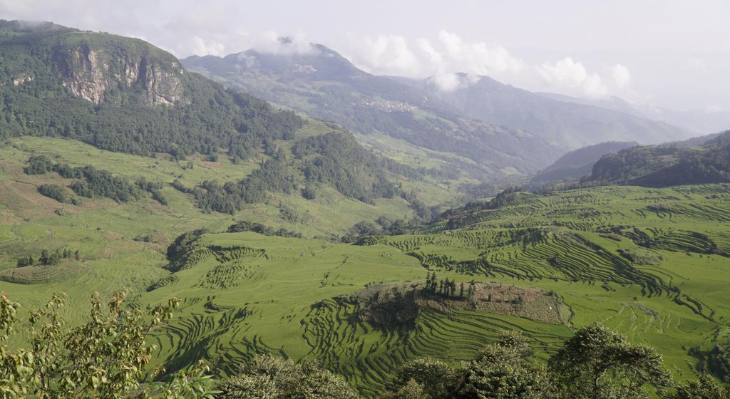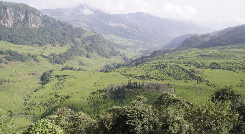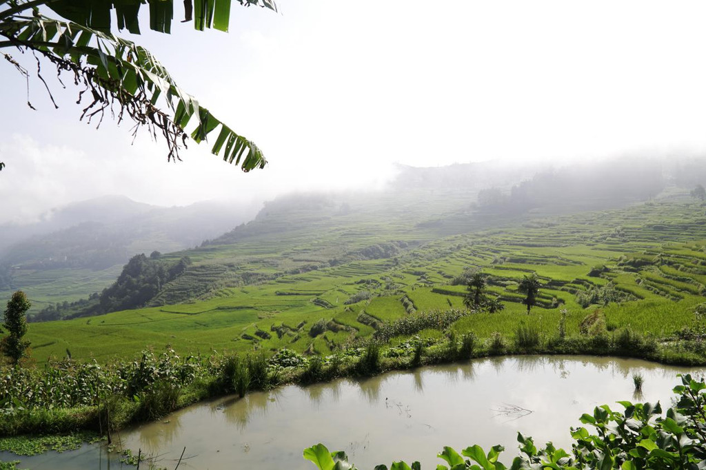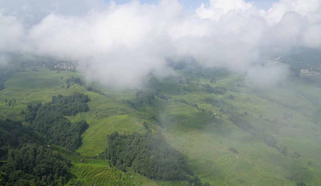 坝达梯田有连片14000多亩的梯田,冬春季节大面积的梯田蓄水反光发亮,是拍摄的最好季节。夏季只是在高处看,梯田在云雾中。