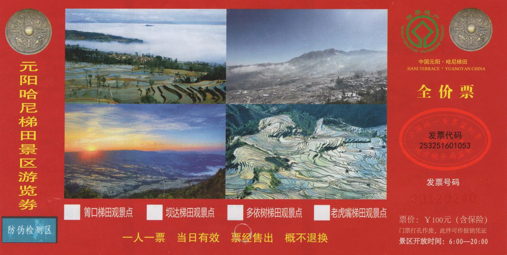 来元阳梯田大都是来旅游观景搞摄影的,而不是来考察的。主要观景点箐口、坝达、多依树、老虎嘴,买一张通票可以一一观览。观景点之间没有区间车,我是靠当地司机师傅带我一一看过的。