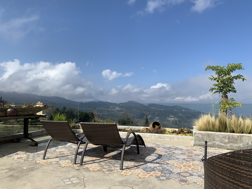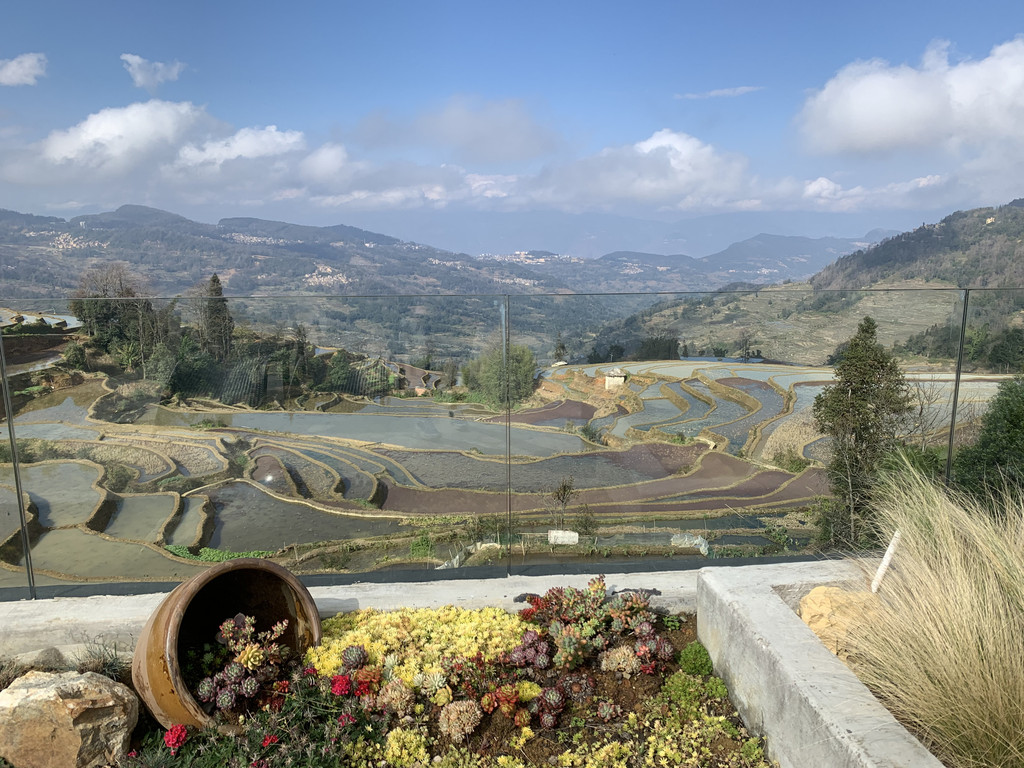 落地玻璃围栏为了保护我们的安全,走进一些可以将梯田景色一览无遗;