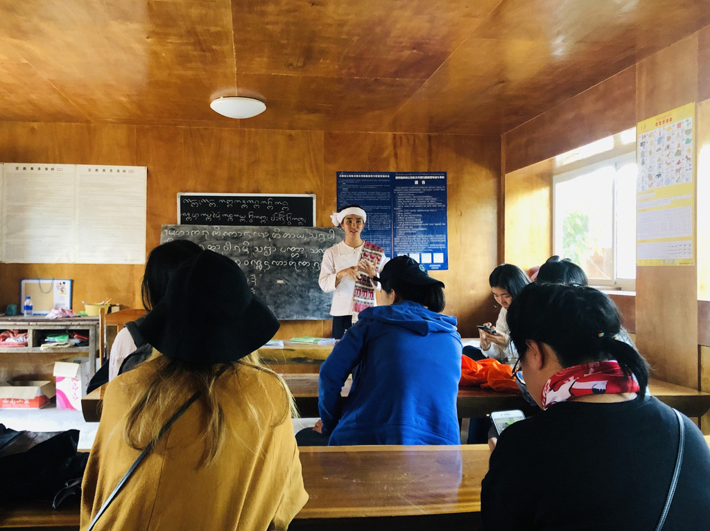 大家切不可伸手摸身边经过的任何草或叶!不然一不小心就会中毒或肿胀,且身边的小树间还有蛇出没,我们在专业人员的带领下有看到一条在树叶下栖息的竹叶青🐍,胆小的我连瞄都不敢瞄远远绕道走开。