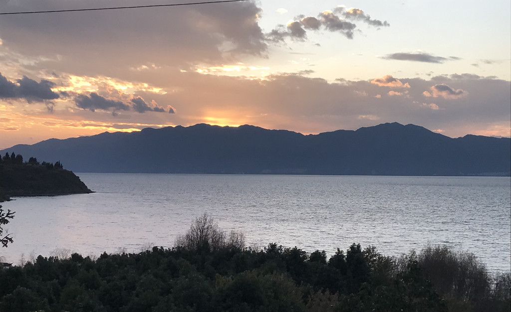 到澄江市的第二天,下起了小雨,没有阳光照耀的抚仙湖水灰蒙蒙的。也许是游了多日人有些倦怠了。第二天我们开车去自由市场买了很多的新鲜蔬菜、牛肉、红酒、草莓、蓝莓……。这里的水果太便宜啦,特别是蓝莓,一公斤六十元。澄江抚仙湖的鱼也好鲜美。买了一堆好吃的回到度家村,一家人烤火吃喝。或者是对着湖水发呆