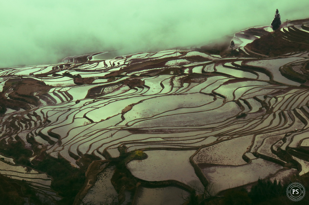 哈尼梯田不同的天气、光照有不同的色彩搭配!大自然的鬼斧神工之造