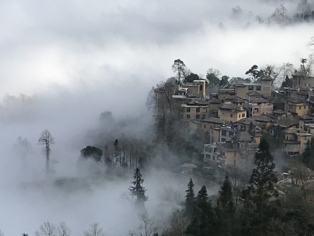 我们到的第二天下起了小雨,风太大,根本放不了大疆。远山被云雾笼罩,看日出不可能啦,上床补觉。吃过午餐,雨停了,我们也出发去多依树,哈尼梯田摄影最好的几个点,老虎嘴(修整,关闭)、多依树、坝达、菁口。路边也有很多,但拍照不理想。因为下雨照片无法拍出五光十色的效果。但涌动的云层,给人仙境般的感觉。白云深处有人家呀!