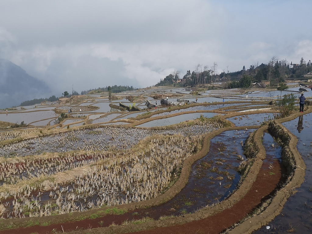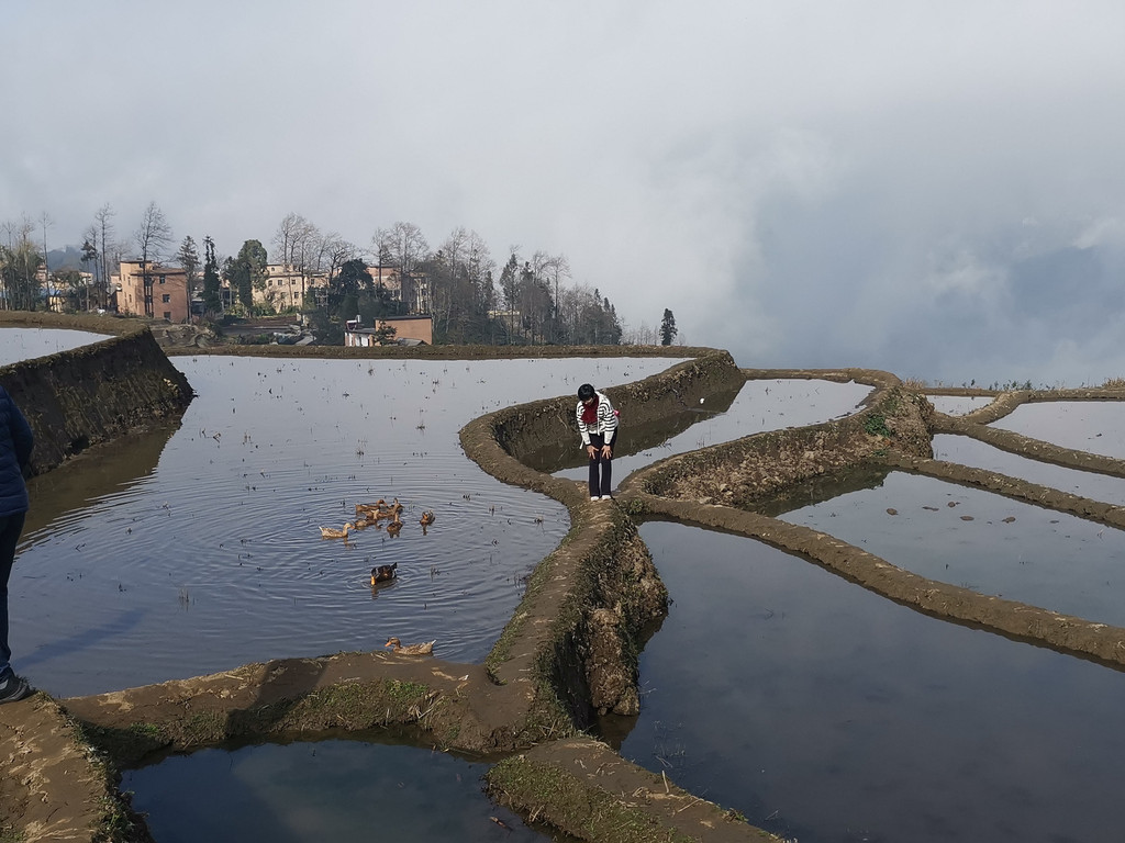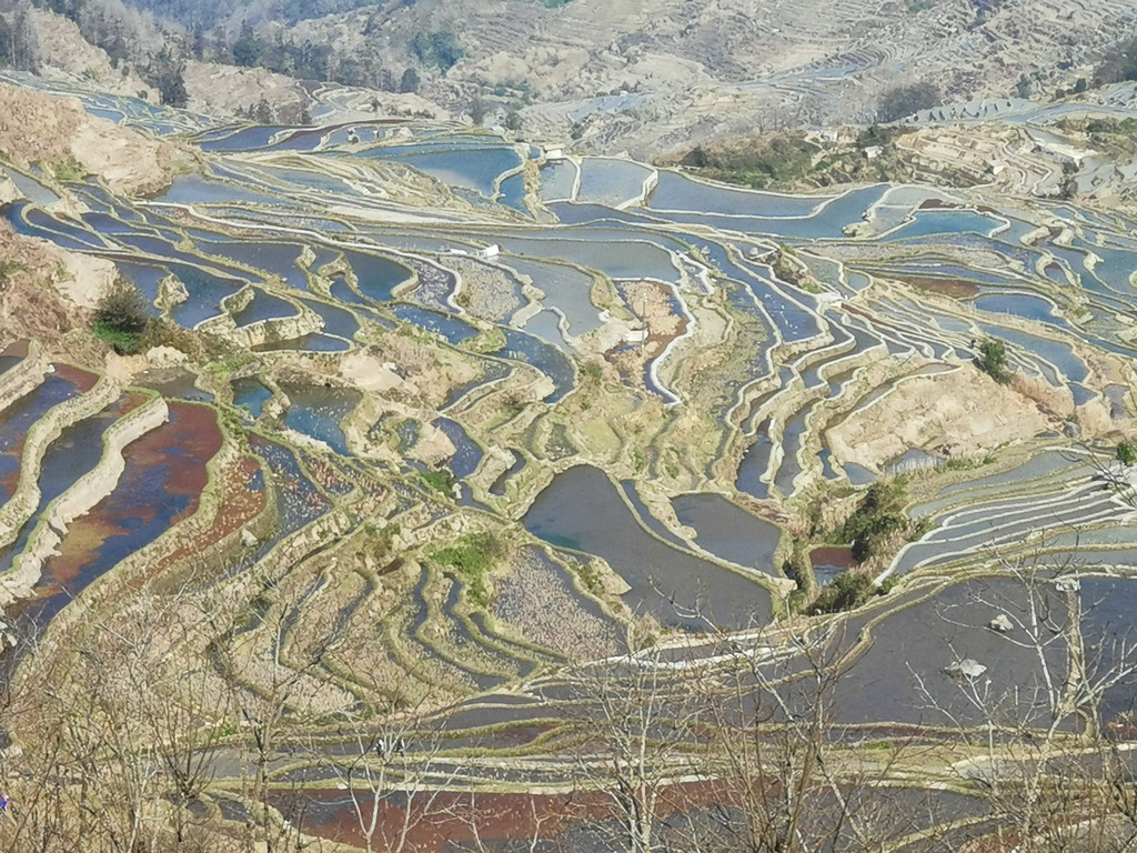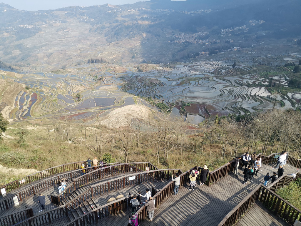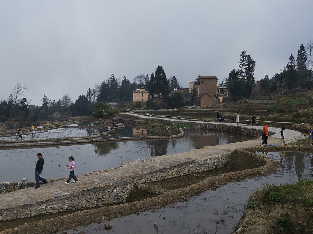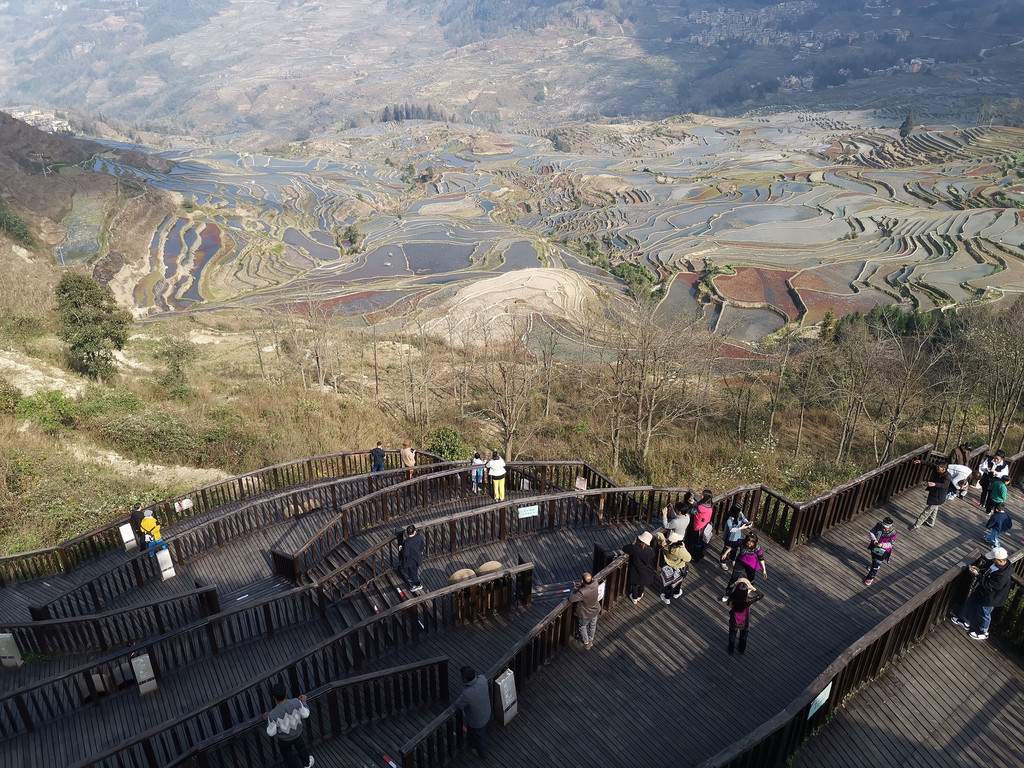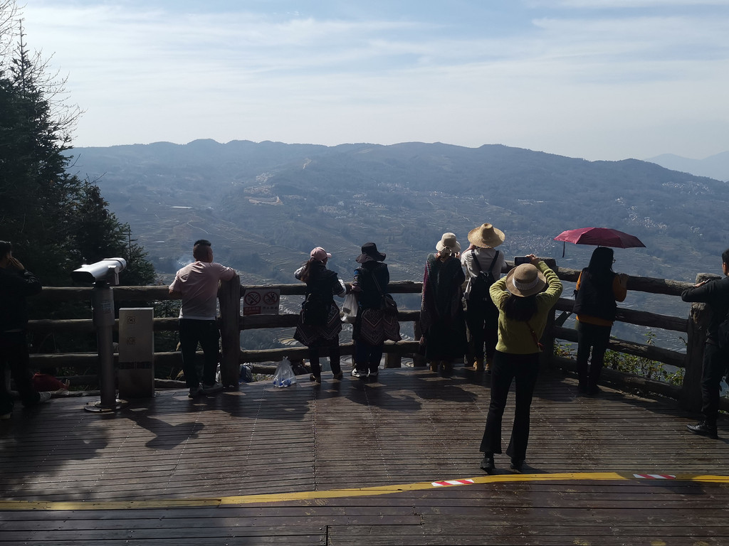 2月16日下午,爱村蓝梯田归来,我们又去多依树看彩梯田。此刻,多依树景区一改早晨的喧闹,没有了游客如潮和车水马龙,观景台上显得有序而平静。