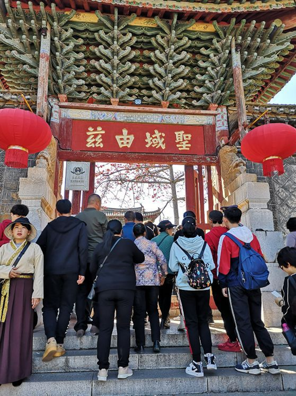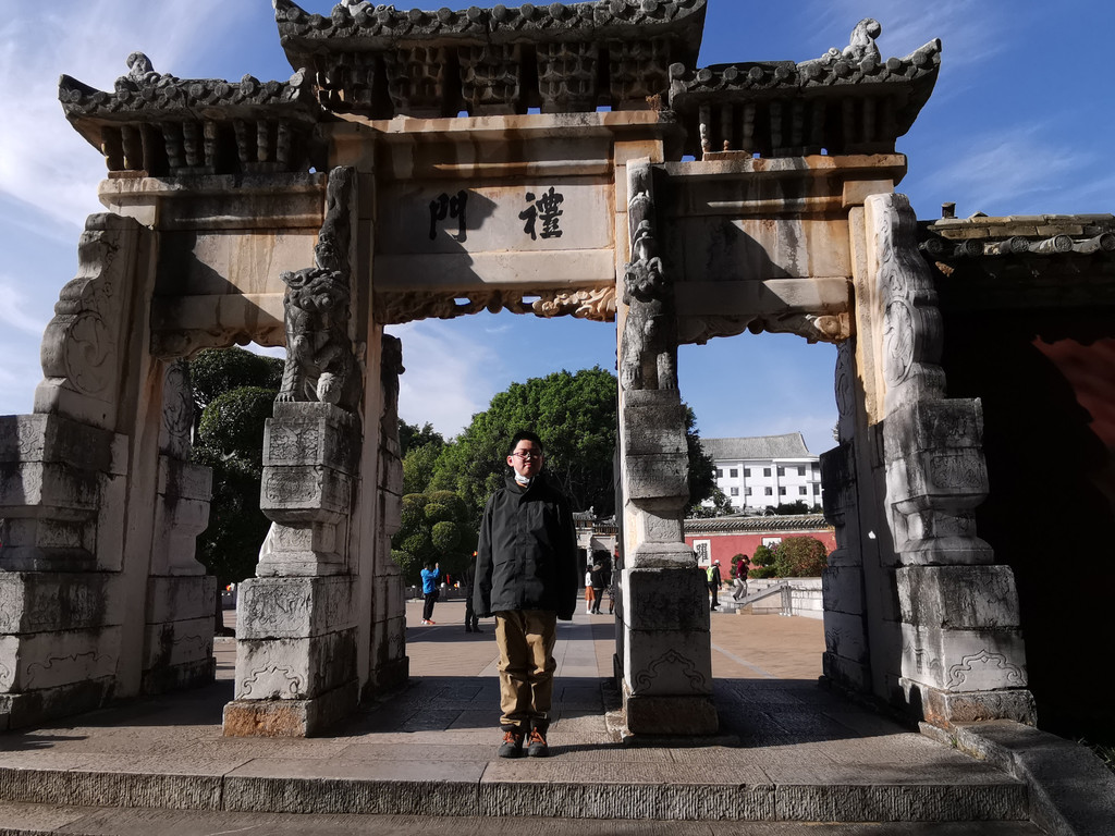 当天正值大年初五,建水古城内可谓车水马龙。我们在孔子广场附近好不容易才找到停车位,随后一路步行,从这座“兹由圣域”之门进入建水文庙(录像一瞥)。
