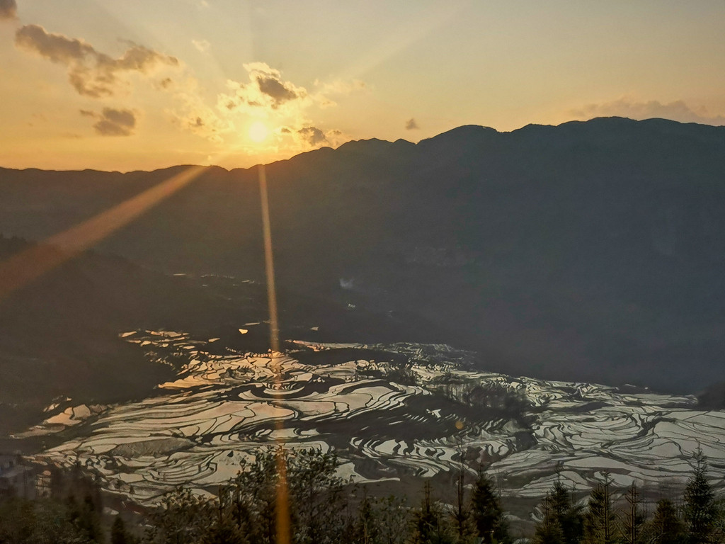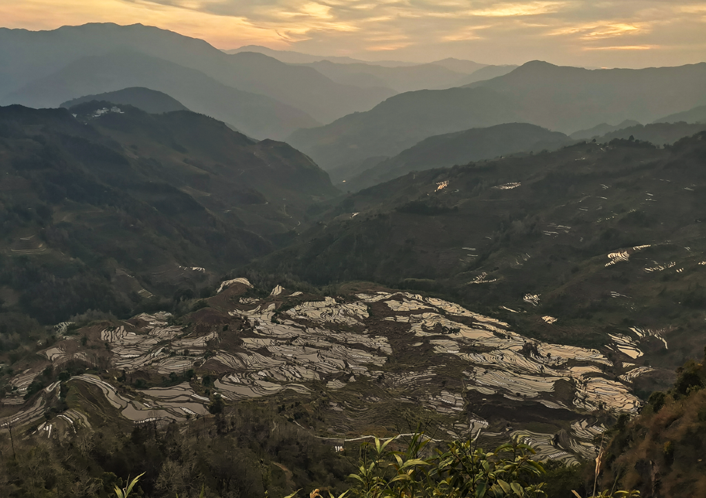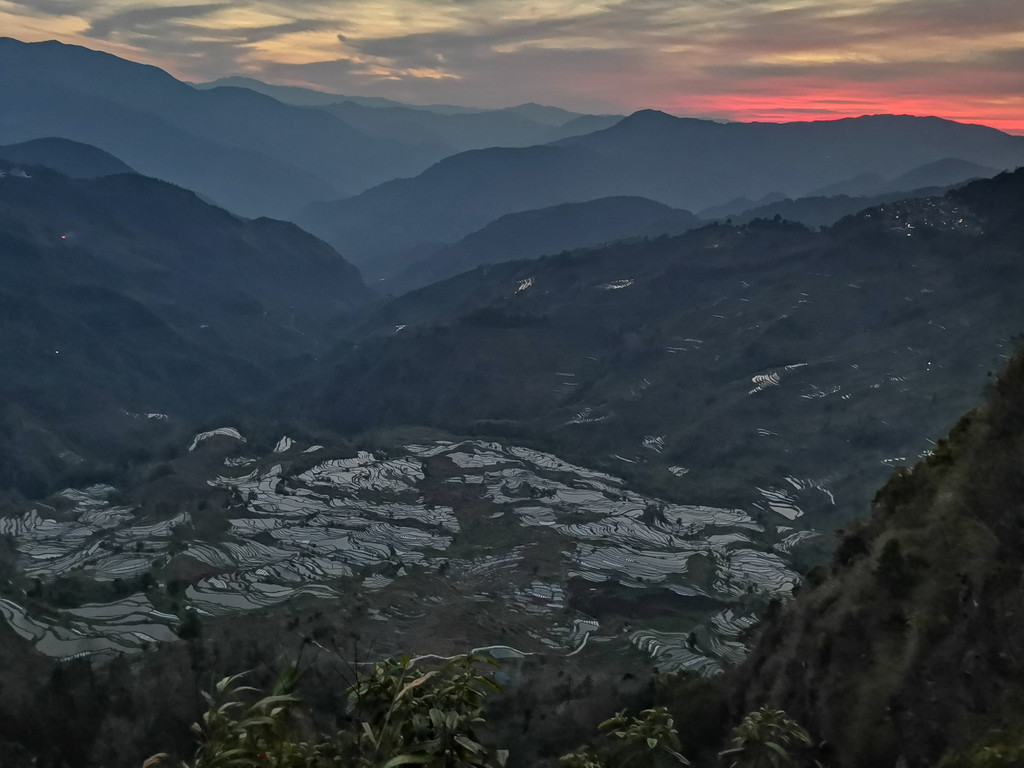 元阳梯田达瓦遮观日落一瞥。