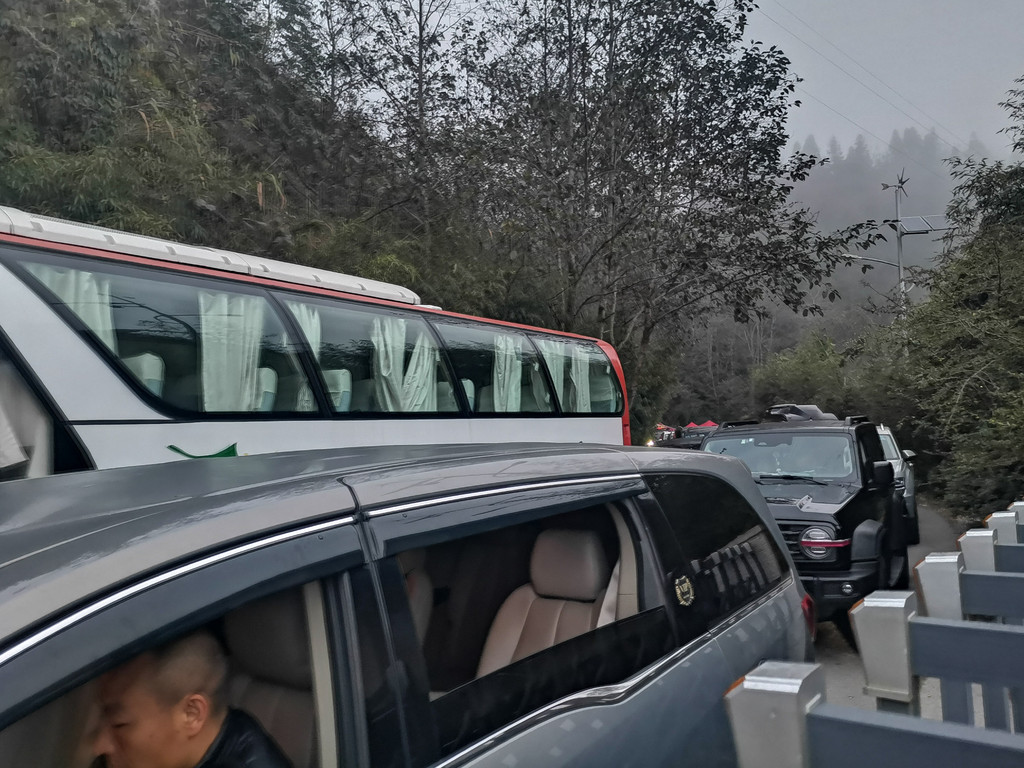当天约上午8点时分,眼看多依树日出无望。我们准备返回酒店早餐。而此刻的景区内外已被堵得水泄不通。真可谓,想进来看日出的来不了,没看到日出想走的又走不了!这就是春节期间的元阳梯田,哪里出彩哪里堵!车轮滚滚即无限,而景区场地很有限!