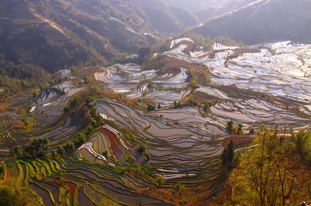 元阳梯田地属云南红河哈尼族自治州,位于滇西南边陲的哀牢山区。元阳梯田是哈尼族人世世代代“雕刻”的山水田园杰作,也是当地各族人民同垦共创的农耕文明奇观。元阳梯田以规模宏大,气势磅礴而著称。2013年被列入世界遗产名录(现为AAAAA级景区和国家级湿地公园)。