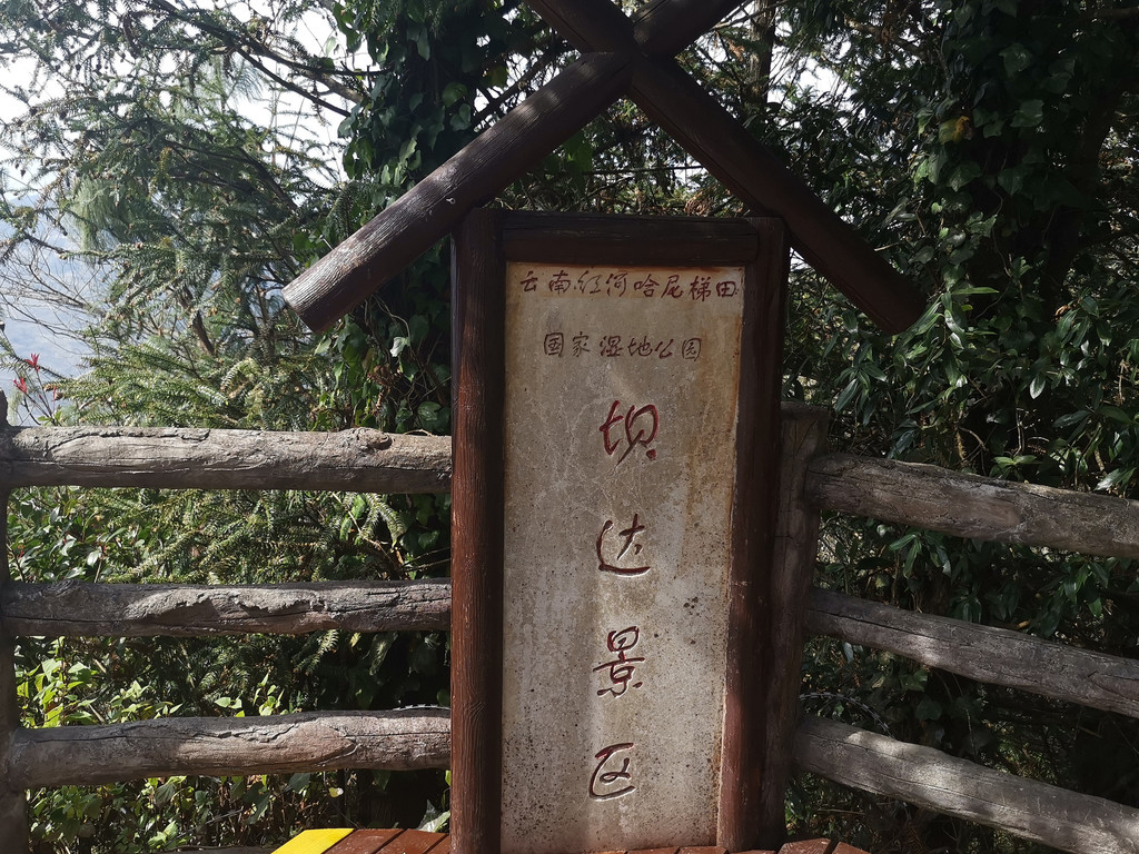 观景台前的“世界遗产三冠联名”标志,无不彰显出多依树景区在红河哈尼梯田中的核心地位。