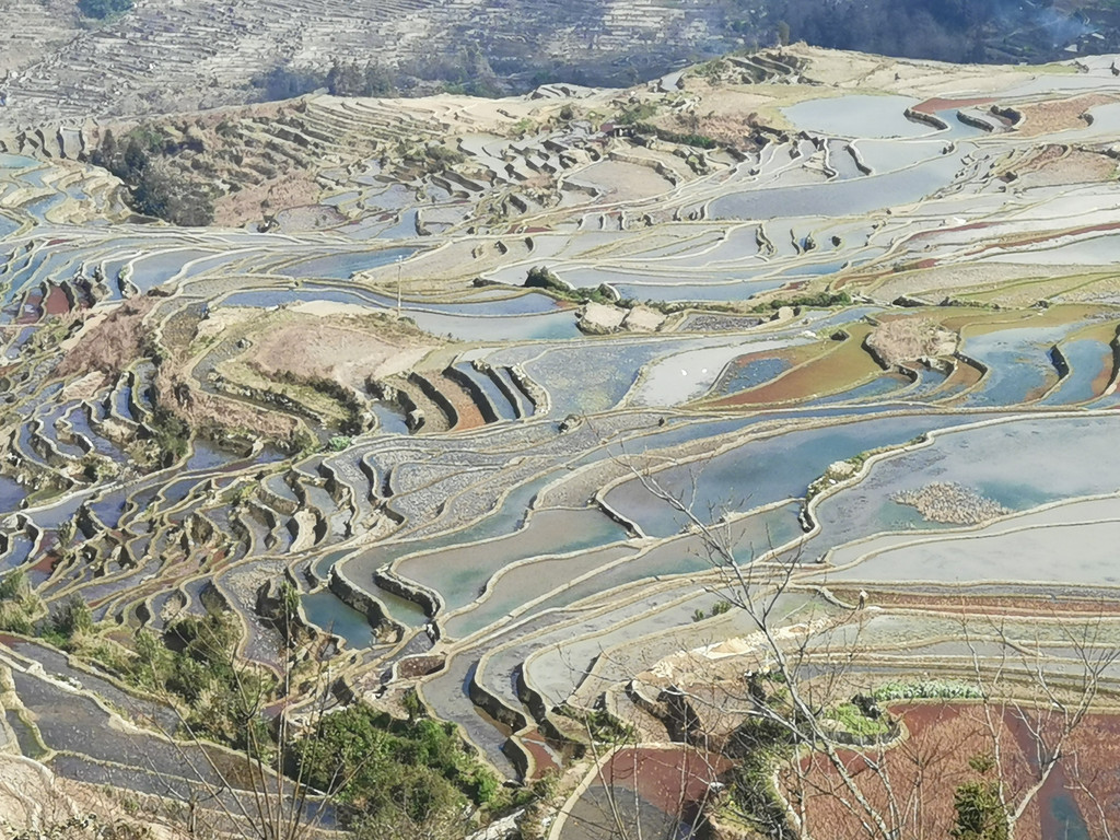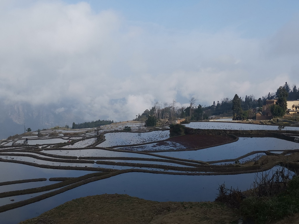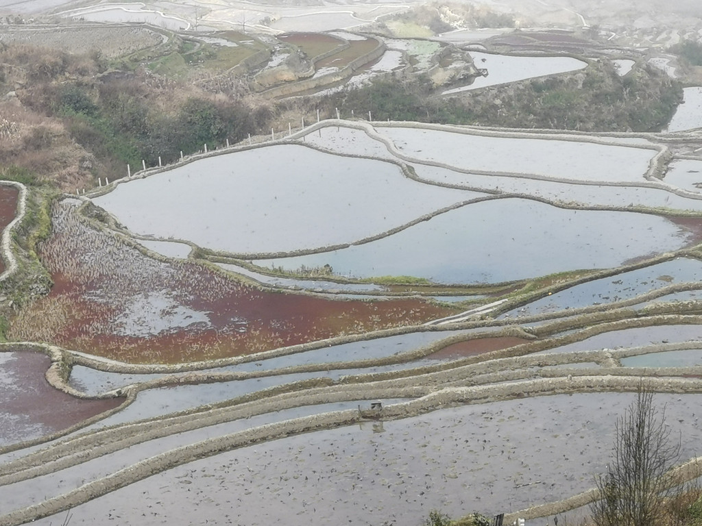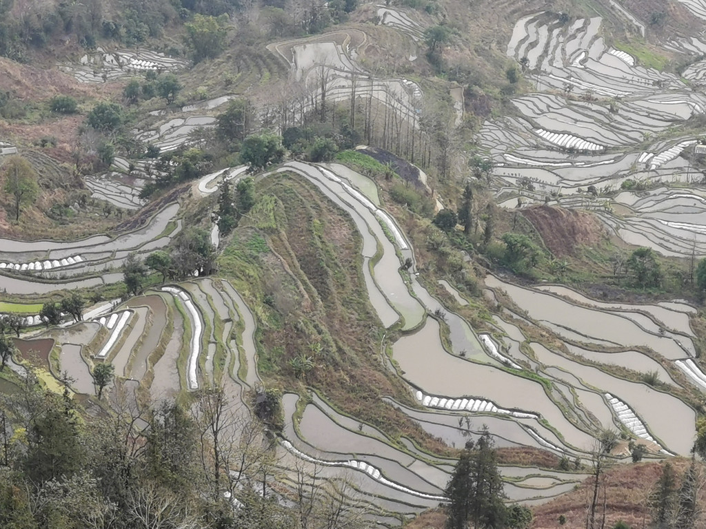 探寻爱村梯田底部无果,我们沿着机耕路重返梯田上部,期望看到出彩的蓝梯田。