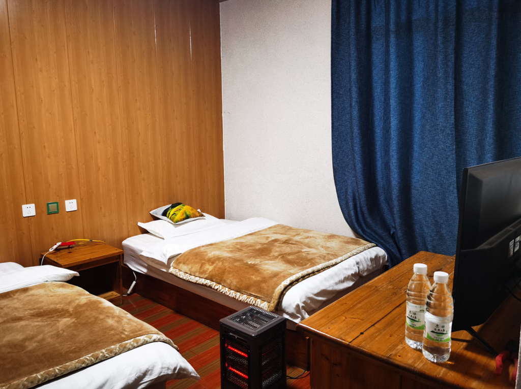 当天下午,我们出了坝达景区,随即前往多依树观景台南侧300米的新都酒店(下图)。20天前预订该酒店双床房为459元(18平/无空调/不含早)。元阳梯田内没有连锁酒店,除了少数大咖高端酒店(价格奇高),大都是一些本地人经营的民宿客栈。这些民宿客栈一般规模不大,行业自律性也不高。春节期间来元阳梯田,这些热门景区附近的住宿,往往都是一房难求。如果你打算看元阳梯田最美的日出,建议你就在多依树观景台附近住宿。否则,当天早晨(道路十分拥堵/根本无处停车)你就很难如愿以偿。