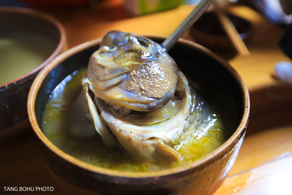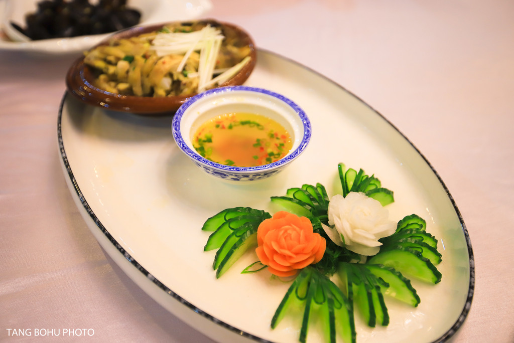 有一道菜让我们还以为是扣肉,万万没想到的是其实是冬瓜做成的菜,不管是从外表看上去特别像外,我品尝了一口,味道还真的有一点带肉的味道。在这里吃新长征宴每一道菜都有一个故事,一边吃饭一边听着服务员给我们讲菜的故事,这对于我们第一次来到于都的游客又对于都有了进一步的了解。