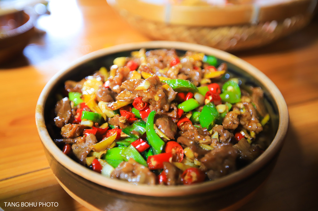 今日来到江西于都,87年前,长征就是从这里出发的。当然不能错过这里的美食长征宴了。当天傍晚我们来到了于都长征宾馆吃新长征宴。品长征故事,享于都美食,一菜一故事,每一菜在这里都有着其中的故事。我最喜欢的一道菜是利村牛肉,源于于都县利村乡。和我们平常吃到的牛肉不一样,这里是用麦叶炒牛肉,麦叶清脆牛肉鲜嫩,荤素搭配味道鲜美,利村牛肉的做法和名气在赣南十八县都很出名。沙心米冻采用于都富硒大米制作而成,沙心米冻放入红椒葱花酱汁翻炒,吃起来口感香糯Q弹,香辣十足。