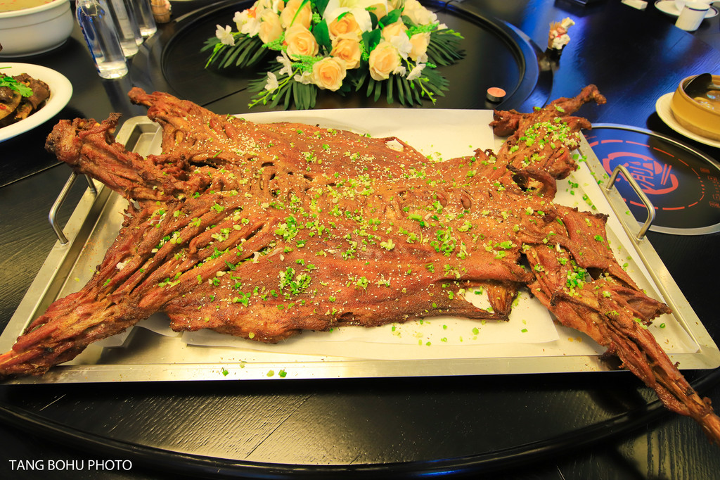 在上蕉百湾湖度假景区里吃烤全羊,美味的羊肉让人念念不忘。