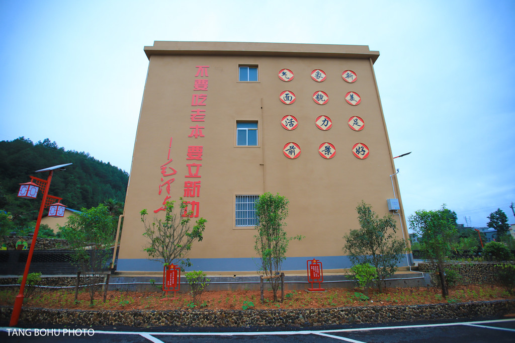 一座红色文化教育基地美丽的禾丰乡村振兴试验区展现在面前,这是经过改造后的旧址,白墙黑瓦,还挂着红灯笼。值得前来打卡拍照。