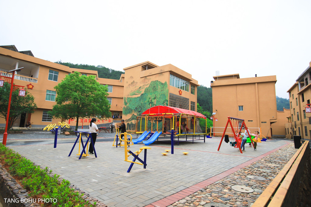 没想到这个村的中心还有很多锻炼器材,看见村民正在锻炼身体,旁边的小孩子正在玩着荡秋千,蹦床,打乒乓球等等。住在这里的小朋友也是很有福气,在家门口就可以玩了。