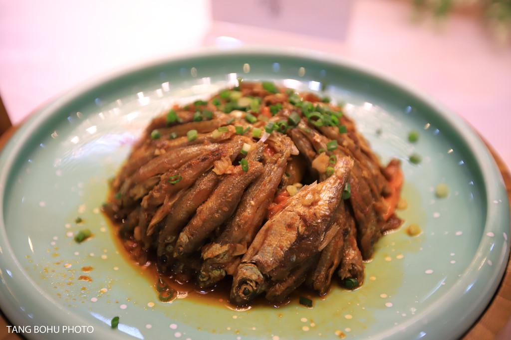 雩河鱼干也是有故事的一道菜,以前有一个叫红妹子她爱上了世代在于都河上以打渔为生的刘家富,并和他成婚。因为丈夫要参军两人不得分离,她特意在贡江河里打捞了一大网兜小鱼烤成干货,然后油炸后配以姜葱蒜辣椒焖入味,再浇酒酿炒干,让家富带在路上吃,家富将美味的鱼干子分享给红 军兄弟们,战士们都称赞好吃。