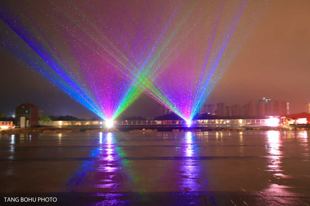 吃好于都新长征宴美食后去新长征广场看一场水幕电影最好不过了,晚上正好遇到下雨,美轮美奂的水幕灯光秀让游客享受一场美丽的视觉盛宴。