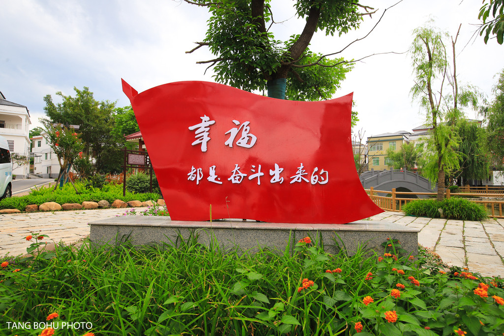 五美乡村之祁禄山镇畚岭村畚岭村是一个经过重新统一翻新改造后的一个村子,走进村里眼前一亮,每一栋楼的外观颜色做到了统一,看上去很新,道路全都是柏油路,刚刚修好没多久,看上去都很新。有一栋楼上面写着“依山傍水,安居乐业”
