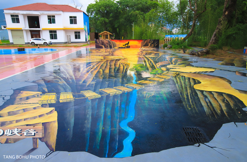 在往里面走进去发现这里还有攀岩项目,简直就是羡慕这里的人了,在家门口就有这么多运动项目。还有一个峡谷的3D的壁画,要站在比较高的地方才能看出这个3D画,很震撼。