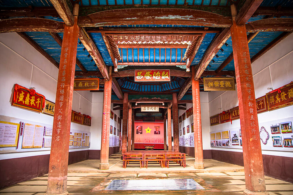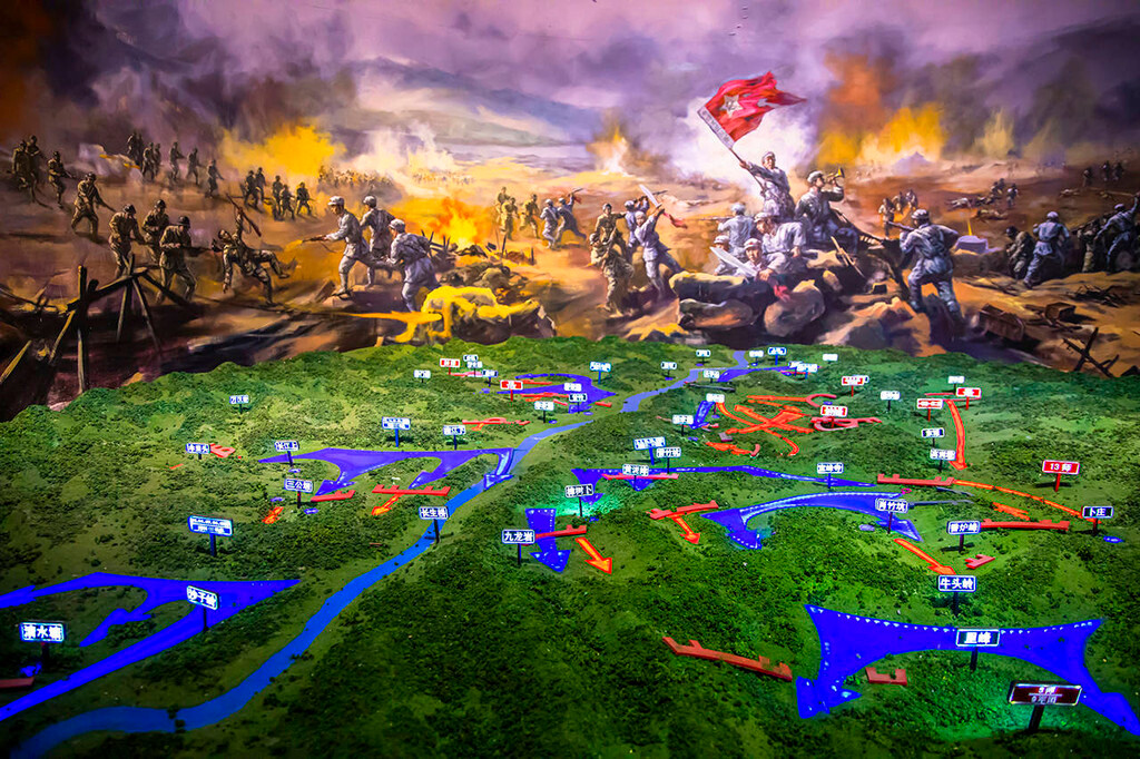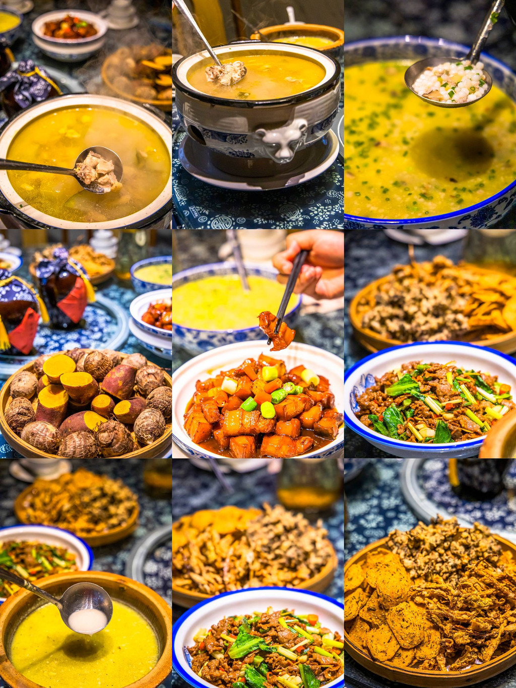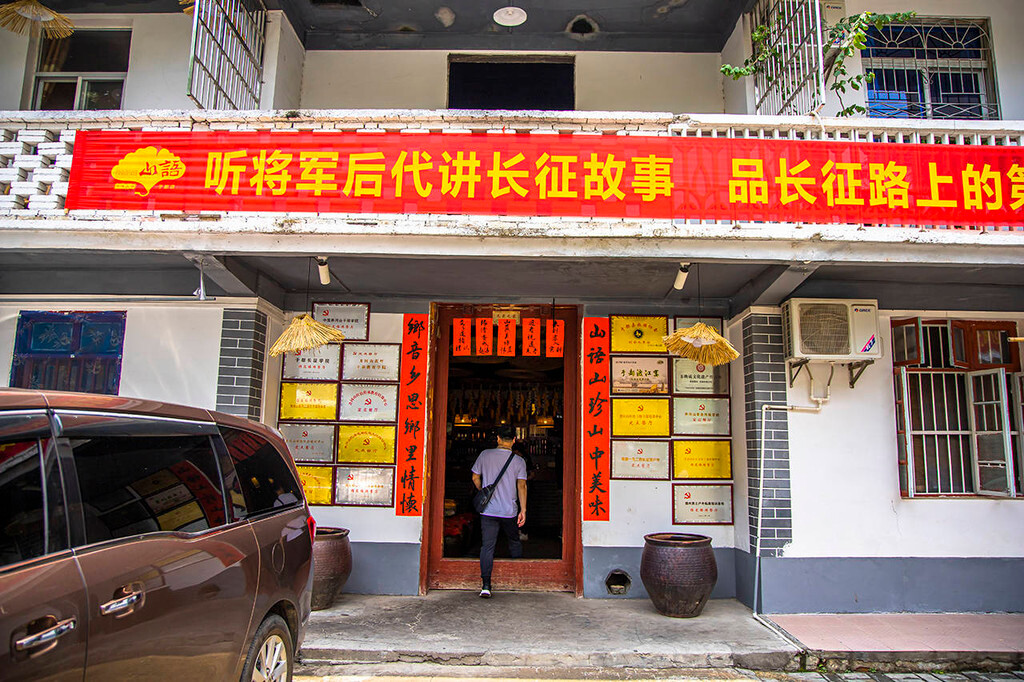 我们围席而坐,通过食物感受于都红色文化的精髓,这是以”红军长征路”启程的文化之旅这是以“新长征宴”带来的味觉盛宴,一菜一故事,品长征故事,享于都美食。 故事从80多年前说起,红军从于都集结出发,开始万里长征第一步。为帮助红军顺利渡河,于都人民无私奉献,扩红参军、借谷征粮、派丁调夫、捐木架桥,倾尽全力。离别总是伤感,于都人民手捧着什锦盒头(卷子、花生、豆子、云片、辫酥等),端着南瓜汤、客家茶送红军亲人走上浮桥,盼望亲人早日回家。 军民鱼水情、苏区“二合一”,是红军和于都人民交付生命的信任和血浓于水的情谊 利村牛肉,源于于都县利村乡。和我们平常吃到的牛肉不一样,这里是用麦叶炒牛肉,麦叶清脆牛肉鲜嫩,荤素搭配味道鲜美,利村牛肉的做法和名气在赣南十八县都很出名。沙心米冻采用于都富硒大米制作而成,沙心米冻放入红椒葱花酱汁翻炒,吃起来口感香糯Q弹,香辣十足。 超爱吃的养生二脚黄,养生土线鸡,食材选自于都岭背镇扶贫产业肉鸡养殖。肉中含丰富蛋白质、氨基酸和微量元素,营养价值高,是真正绿色无污染的健康食物。吃起来非常鲜美,回味无穷! 这一道菜看起来很像是扣肉,万万没想到的是其实是冬瓜做成的,不管是从外表看上去特别像外,我品尝了一口,味道还真的有一点带肉的味道也味道特别好。当红军历尽无数难,取得二万五干里长征的伟大胜利后,终于迎来幸福大团圆;苦尽甘来,人民的生活过的来好,酒醉肉、利村牛肉慢慢成为了家常菜。 雩河鱼干河鱼晒制成干粮,承载妻子对丈夫的依依不舍之情,长征野菜,忆苦思甜、不忘初心。在这里吃新长征宴每一道菜都有一个故事,一边吃饭一边听着服务员给我们讲菜的故事,这对于第一次来到于都的游客,在通过抵达于都第一顿晚餐便更了解了这里。 【夜游新长征广场,观看一场水幕电影】 品味过长征美食后,大家便一同前往新长征广场,观看一场水幕电影,在声,光,电和水幕的搭配之下,感受一场艺术的盛宴。 在中央红军长征出发地纪念园新长征广场,每周五、周六晚上可以观看到大型红色水幕电影。随着一阵悠扬的音乐,广场正前方的喷泉上随着水幕的喷出,一幅幅色彩鲜艳的图像出现在半空中,水雾电影中介绍了众多于都红色的感人事迹,这些造型各异的图案旋转着、飞舞着,像一个个灵动的精灵,观看的人群中不时爆发出欢呼声和掌声。 静水流深,心潮澎湃。在中国地图上,于都河只是一条普通的河流。但在我们心灵的版图里,它水远都是探寻“初心”的源头 于都是中央红军长征集结出发地,长征犹如一座丰碑,光辉地立在了中华民族复兴的伟大史册中。 🕙大型红色水幕电影放映时间:每周五周六周日晚20:00,21:00各一场(下雨天除外); 演出地点:中央红军长征集结出发地纪念园新长征广场。 于都长征源湿地公园,是一处省级湿地公园,位于于都河河畔。慢走在湿地公园内还能发现不少的小红军雕像尽显于都红色基因。 【中央红军长征集结出发地纪念园 长征起点初心之旅】 中央红军长征出发地纪念园,长征起点初心之旅 江西是著名革命老区,也是中国革命的摇篮,更在中国工农红军长征历史上扮演着重要角色。我们一行人身着军装来此追寻红色足迹,探访中央红军长征出发地纪念园,向中央红军长征出发纪念碑敬献花篮,并参观中央红军长征出发地纪念园。寻访长征的历史故事,感受长征路上的红色精神魅力。 中央红军长征出发地纪念园位于全国重点文物保护单位——中央红军长征出发地旧址于都县城东门渡口。纪念园由送别主题雕塑、集结广场、东门渡口旧址、中央红军长征出发纪念馆等纪念设施组成。当年中央红军渡过的那条于都河,也在纪念园旁缓缓流淌。 来到纪念园,一定要去中央红军长征出发地纪念馆参观学习。纪念馆展厅有两层,陈列是采用文字、图表、照片、声、光、电等现代化手段,直观展示中央红军出发长征的历史,再现中国革命伟大转折及苏区人民支援红军的历史场景,是目前全国唯一一处了解中央红军长征出发历史的主题性纪念馆。 整个展厅图文并茂、生动记载了英勇的工农红军非凡的智慧和勇气,以百折不挠的革命精神和所向无敌的英雄气概,并最终取得长征胜利的伟大壮举。 在中央红军长征出发纪念馆内一副由80双草鞋组成的中国地图,十分引人注目。小红五星代表了江西于都,大红五星代表首都北京。中央红军当年就是穿着这样的草鞋,一走走了两万五千里,走出了中国革命的新局面。 参观后,大家都感动于老一辈革命者艰苦卓绝的斗争精神,并从中汲取到红色基因传承的力量。 红军的长征,不仅是一次杰出的军事成就,还是一次具有深远影响的政治运动。纪念园先后被中宣部公布为“全国爱国主义教育示范基地”、国务院公布为“全国重点文物保护单位”、团中央公布为“全国青少年教育基地”、国家旅游局公布为“国家三A级旅游景区”。 如今,中央红军长征出发地纪念园已成为弘扬长征精神、开展爱国主义教育的重要场所,并已列入全国30条红色旅游精品线。 地址:赣州市于都县于都县贡江镇 门票:免费开放 开放时间:全天 周边公交信息:于都2路、于都5路 【红四军军部旧址葛氏宗祠,长征源民俗博物馆】 江西于都•『长征源民俗博物馆』 一座革命遗址:葛氏宗祠,也是红四军军部旧址。如今是赣南
