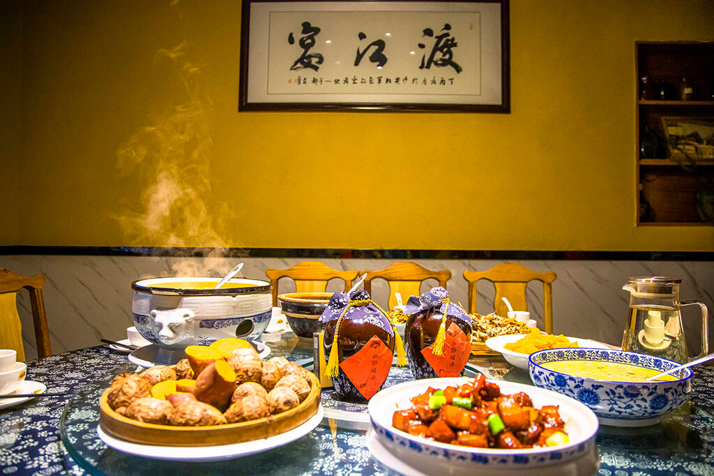 【第一天】:都高铁站集合--晚餐:新长征宴-——于都河夜景-——观看大型红色水幕电影-——入住枫叶花园酒店 【第二天】:中央红军长征集结出发地纪念园 ——纪念碑瞻仰 ——参观长征渡口——参观中央红军长征出发纪念馆——红四军军部旧址 葛氏宗祠——长征源民俗博物馆(打草鞋)—— 于都县工农兵革命委员会旧址 ——昭忠祠——赣南省苏维埃政府旧址暨长征前夕毛泽东旧居何屋 ——午餐:渡江宴 山语餐厅 ——车溪乡坝脑古村 ——谢屋古村 ——岭背黄金潭老码头——晚餐:黄金潭 鱼馆—— 《长征组歌》演出 ——入住沃尔顿大酒店 【第三天】:葛坳澄江村 ——银坑镇竹篙寨 (中央后方保管处旧址)—— 银坑镇平安村 (中国传统村落) ——中餐:土菜馆 ——铜锣湾+段屋乡围上村 ——寒信古村 ——晚餐:寒信流水席 ——游览服装一条街 ——夜游:欢乐雩阳美食公园 ——入住:维也纳酒店 【第四天】:龙溪村 (龙溪梯田 生姜)—— 仙下乡上方村 ——观背村 ——午餐:观背村土菜馆 ——午餐后返程 品长征故事,享于都美食【长征宴】 初心之旅来到长征出发地—江西于都,中午从武汉出发,傍晚时间便抵达,第一站就来到长征宾馆品尝当地特色美食:长征宴。品长征故事,享于都美食,一菜一故事,每一菜在这里都有着其中的故事