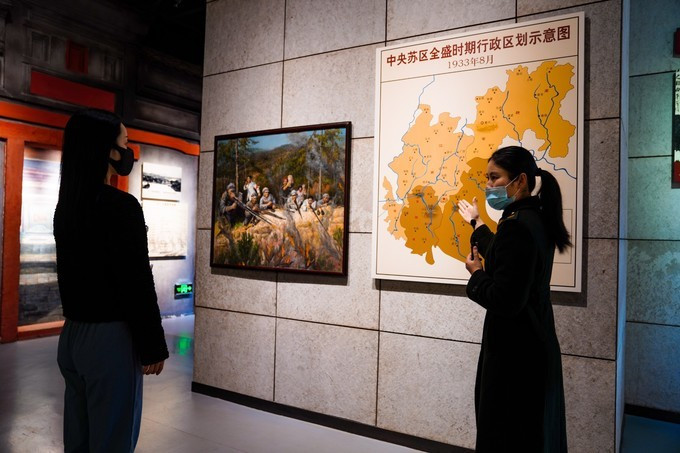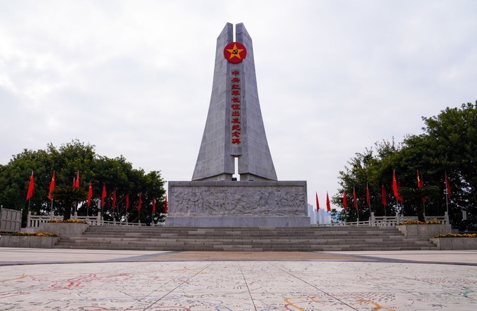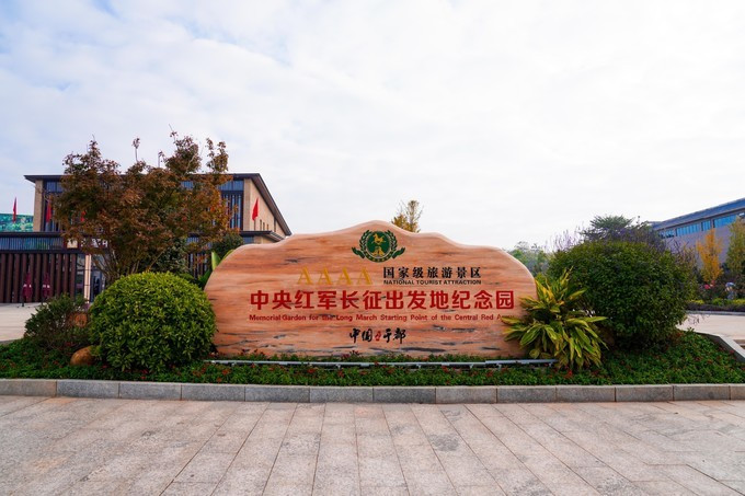 园内的中央红军长征出发纪念馆,是目前全国唯一一处展示中央红军长征出发历史的主题性纪念馆,纪念馆占地面积1100平方米,建筑面积2200平方米,展厅两层,一楼为长征出版物博览中心,集长征出版书籍、音像制品展示、VR、AR体验以及红色课堂为一体,二楼陈列采用文字、图表、照片、声、光、电等现代化手段,直观展示中央红军出发长征的历史,再现中国革命伟大转折及苏区人民支援红军的历史场景。