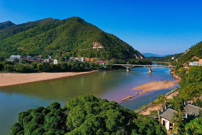 于都县城东北方向30公里处,座落着一个山川壮观、风景绚丽的客家千年古村——寒信。这里因处梅江寒信峡口,故名。四周群山环抱,背靠庵背山,左有石公嶂、右临车头嶂,前朝摇金山,四周山体耸耸青绿。梅水从北蜿蜒穿过寒信峡,恰如一条白纱带回荡在青翠葱绿的山峡之间,绕过寒信村落。青山、碧水、沙滩、田园、古榕、古建筑营造出一种旖旎的山水风光,形成了赣南客家村庄的田园风景。