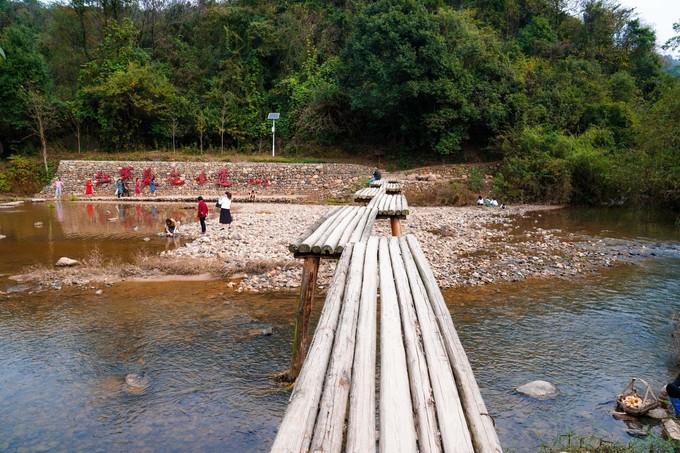 在红峰村山脚下的山溪边有一处“沙滩”,每到节庆假日,这里都热闹非凡,人声鼎沸。许多儿童和家长们在沙滩上玩得不亦乐乎。