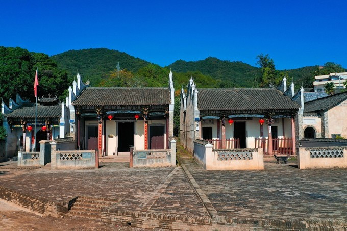 在寒信村最宏大、醒目的建筑物,便是昭示开基始祖不朽功绩的寿六公祠。寿六公祠由康熙十九年改建,三进二井,雕梁画栋,为秉承先人敦亲睦族之遗训,取名“敦睦堂”。梅江从祠前环绕而过,四周龙盘虎踞,气势磅礡。