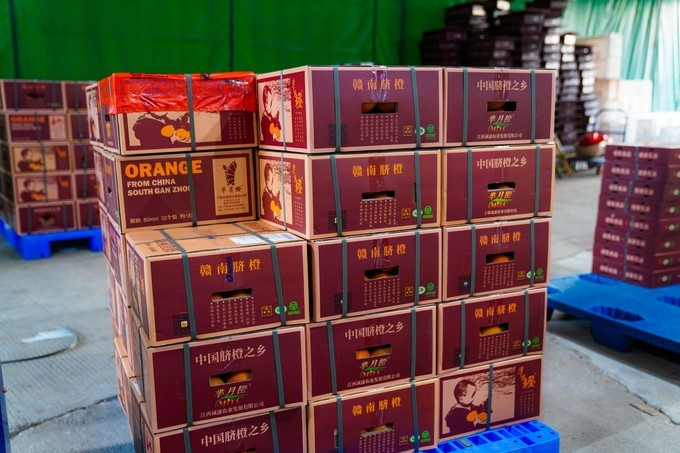 种植、采摘、包装、销售,包装车间里,工人们把脐橙按品质和大小分类,包装成箱,发往全国各地。