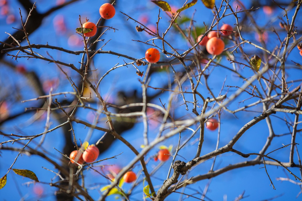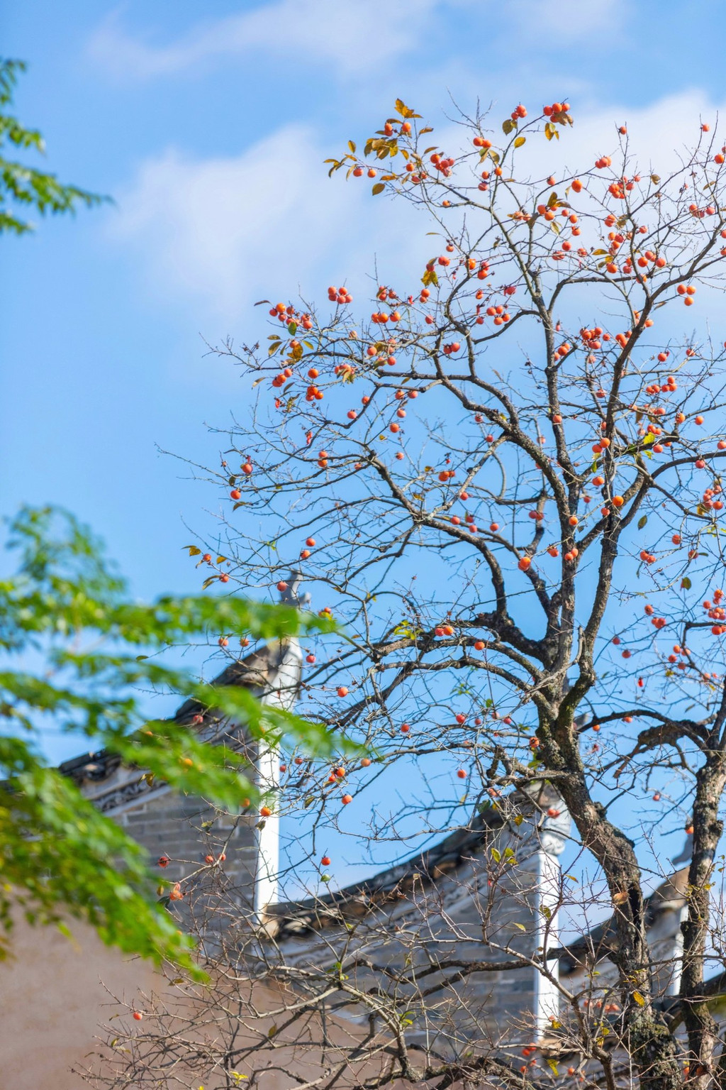秋天也是收获的季节,村子里有棵高大的柿子树,黄澄澄的,仿佛一个个小红灯笼悬挂在枝头,看着就让人眼馋。