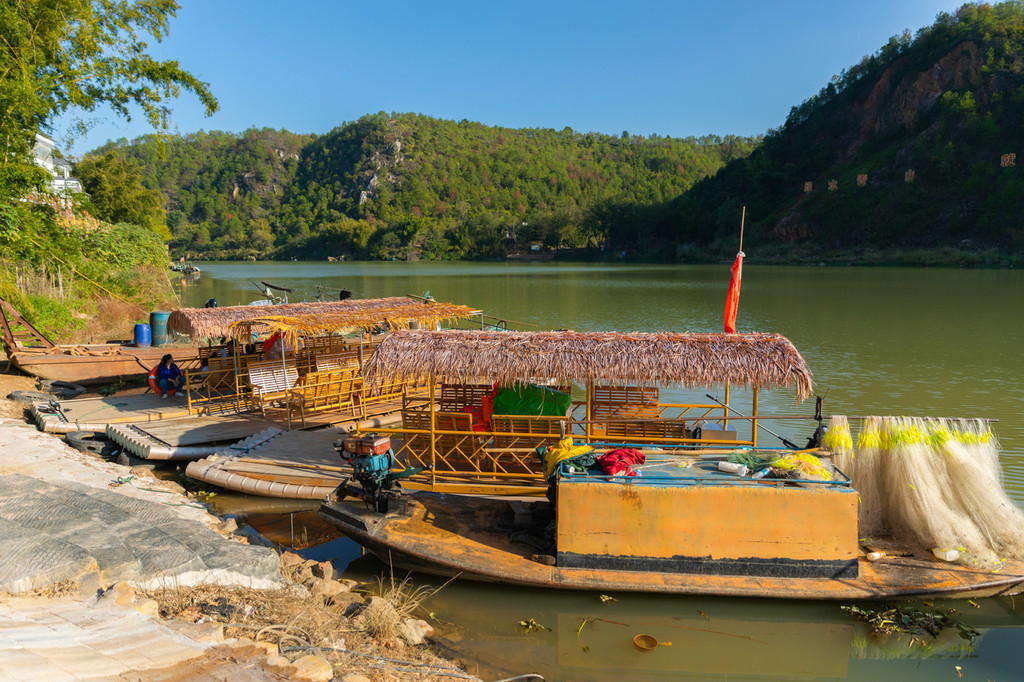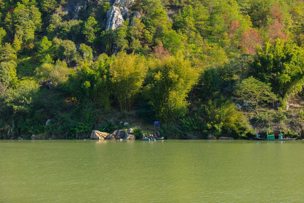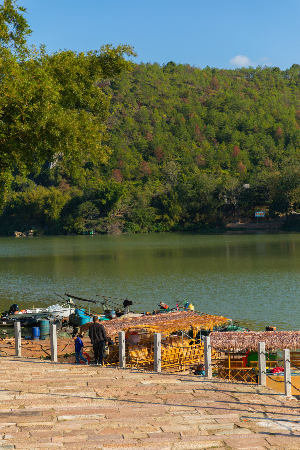阳光晴好的午后,这里沿岸还有很多的船只,渔民们在晒网,有些渔民已经上岸开办了“码头鱼馆”,这里随着旅游业的兴起,也变得越来越好。
