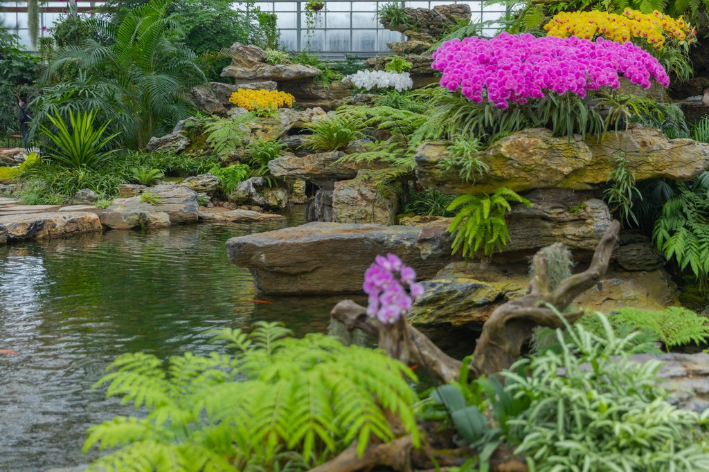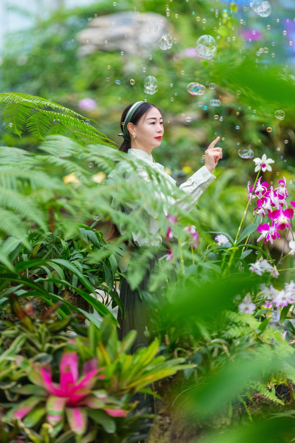 走进占地1万平方米的高标准恒温兰花科普展示厅,紫色的蝴蝶兰、白色的带叶兜兰、黄色与紫色相间的黄金甲,各色的兰花在春风中恣意绽放,美不胜收。