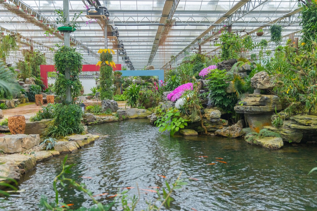 这里有兰花展示厅和公园、兰花大棚、果蔬采摘大棚、花海、亲子游乐园、花卉长廊、河边廊道、神农湖、匠心园等景观,集观光旅游、生态农业、科普示范、休闲度假为一体。